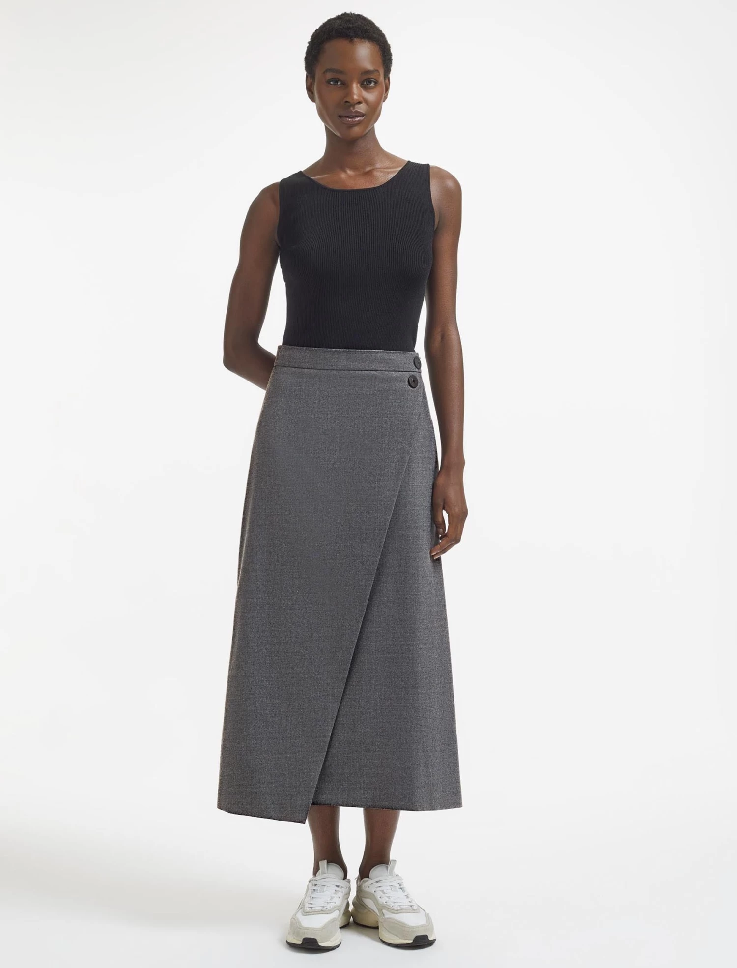 Back by popular demand, the super-cool Layla maxi wrap skirt ticks both the work and play boxes. Designed in our wool suiting fabric with a hint of stretch, the wrap is stitched down so it won’t gape, and it has an elasticated back waist for easy wearability. Style with a crisp white shirt and heeled boot for an on-trend daytime look, dress up with a silk blouse or soften with a pointelle knit.