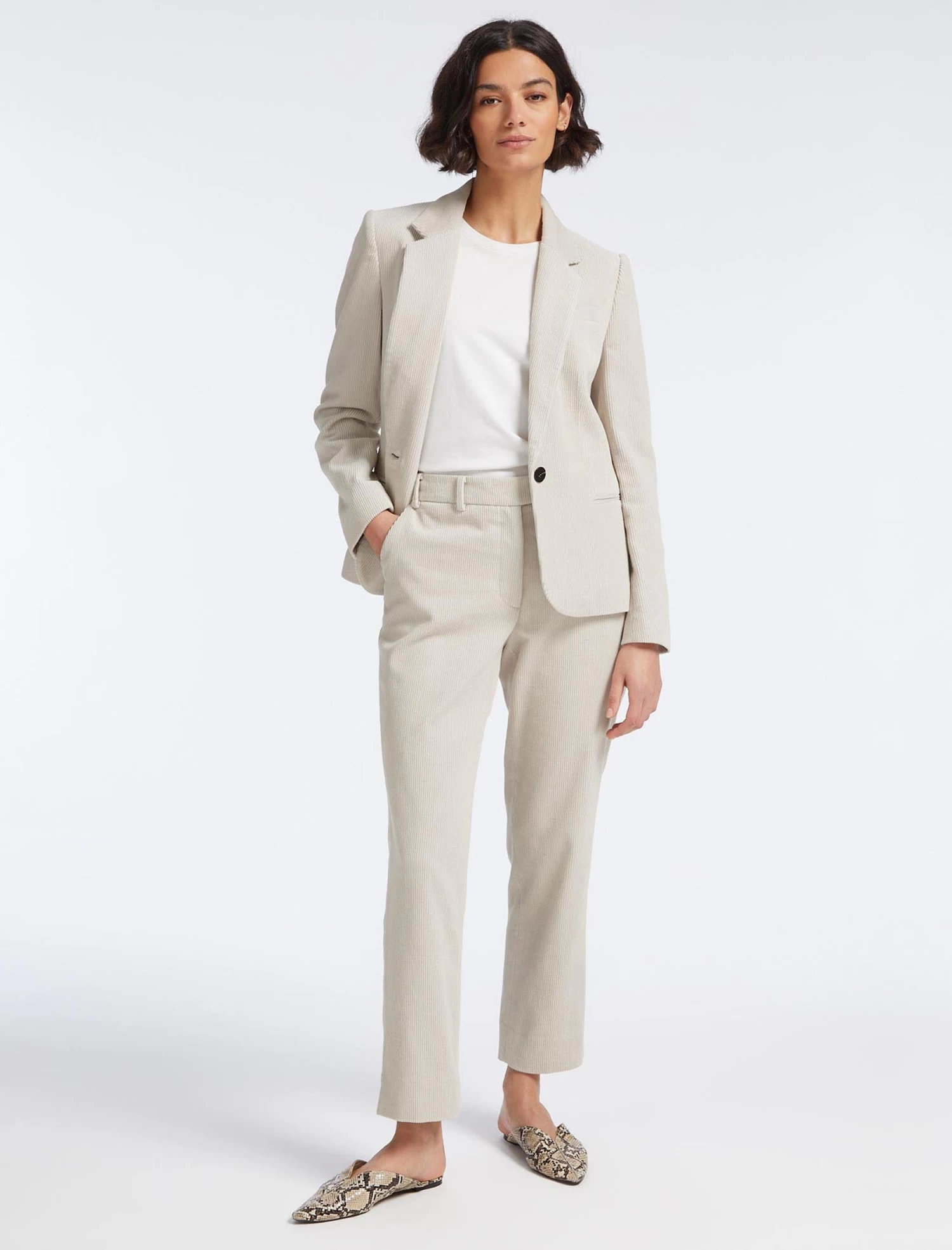 Our new Leo blazer is the ideal trans-seasonal cover-up. A shorter version of our classic Jamie blazer, the machine-washable wide-wale corduroy gives it a smart-casual spin. For a more relaxed take on suiting, match it with the Tatum trouser and our Freida top.
