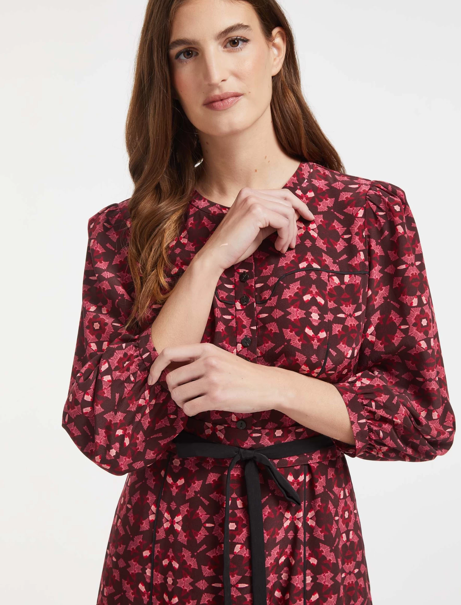 If it’s on-the-go glamour you’re after, then our Loella dress is just the ticket. Designed in our eye-catching tie-dye print on silk crepe-de-chine, the pretty bodice has figure-flattering corsetry-style piped detailing and bracelet sleeves (ideal for petite figures) that lend it ladylike appeal. Add our Caro cardigan and a slimming knee-length boot, and you’re all set for January and beyond.