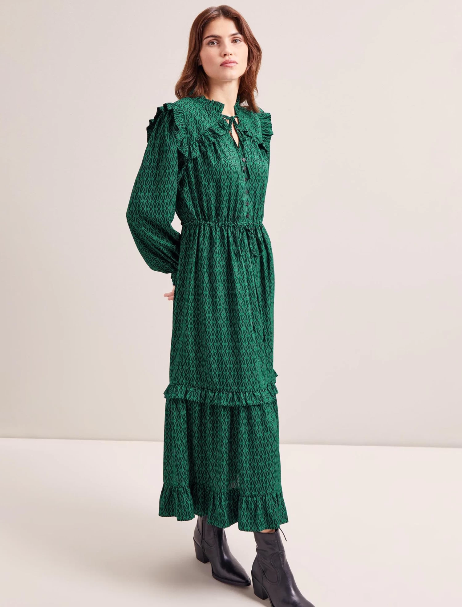 We know time is often of the essence, so we’ve reworked our bestselling Loretta dress in machine-washable recycled hammered crepe. Also, new for Spring 2024, the drawstring waist makes it effortlessly easy to wear, while the additional rouleaux summarys add to its feminine charms. Ideal for navigating those tricky mid-season months, wear with a sharp ankle boot and tights on colder days.