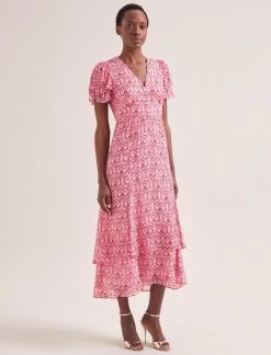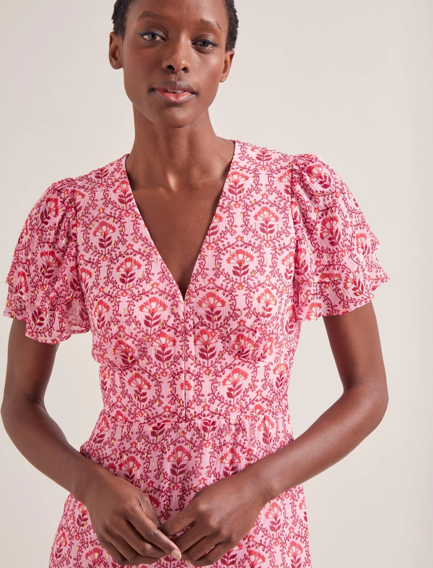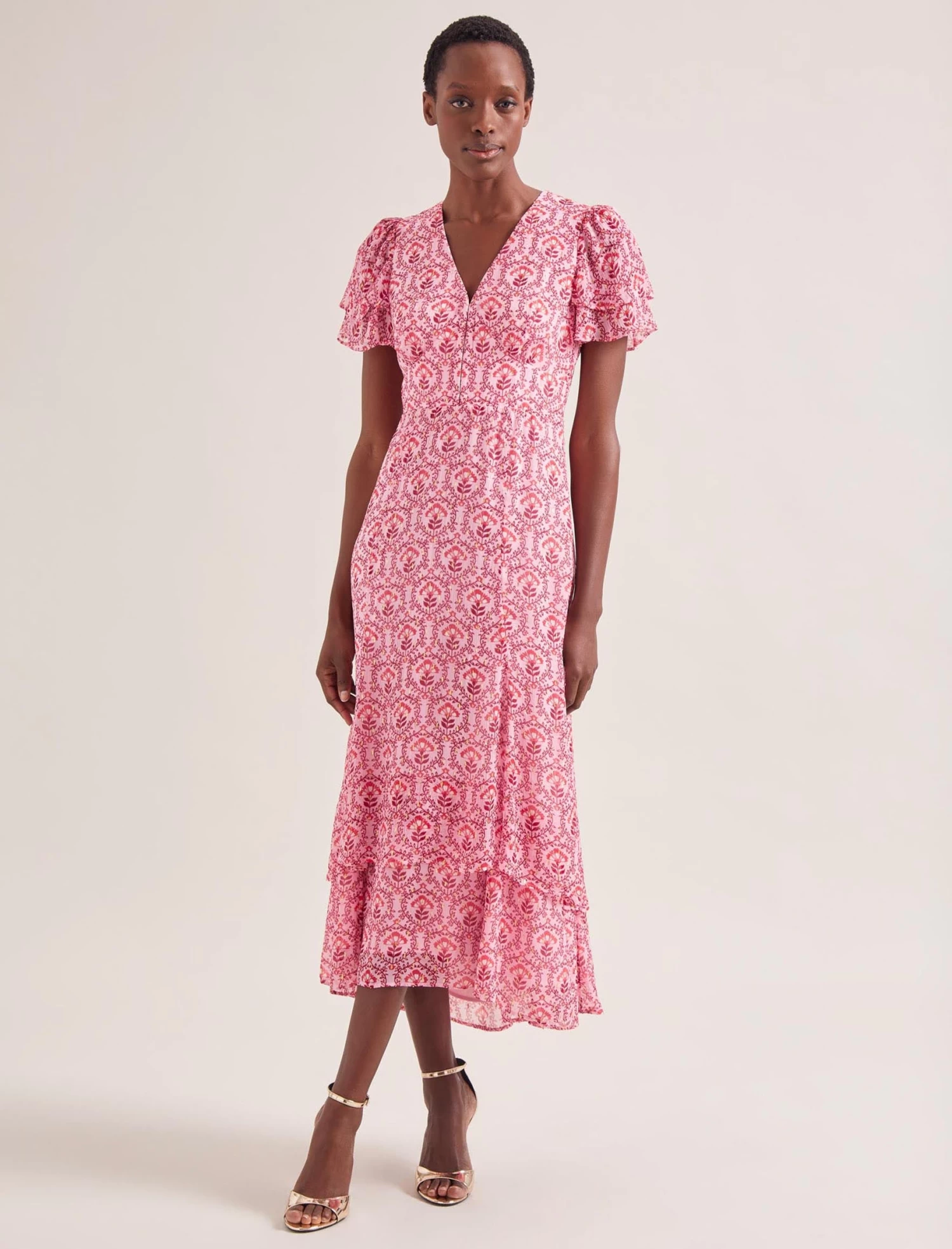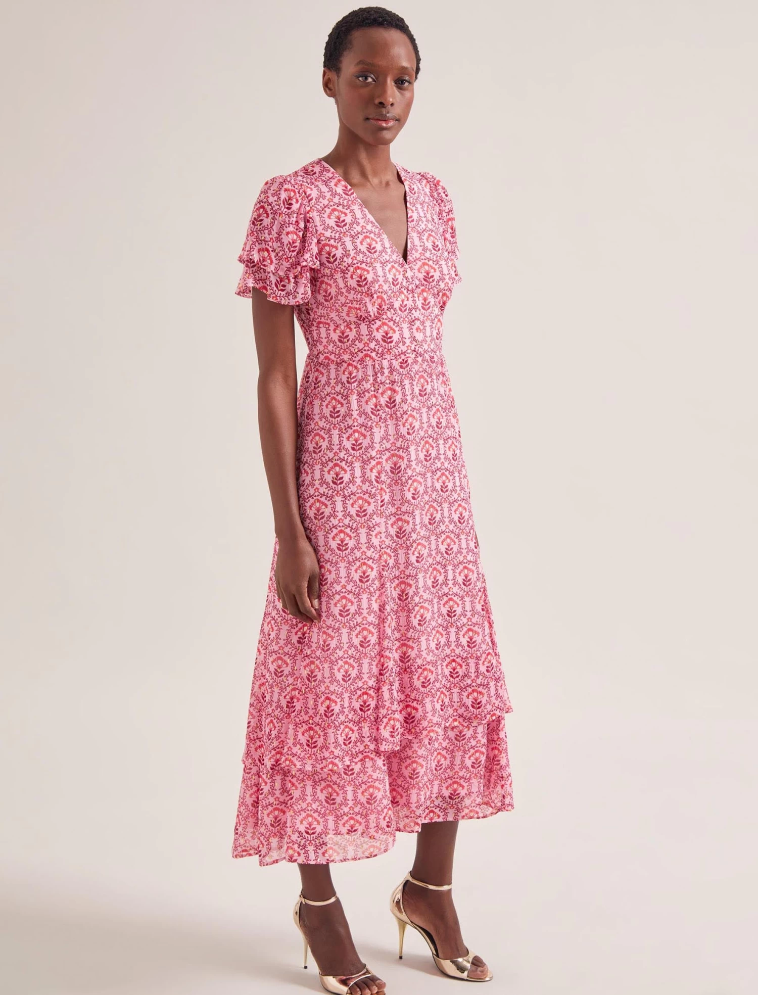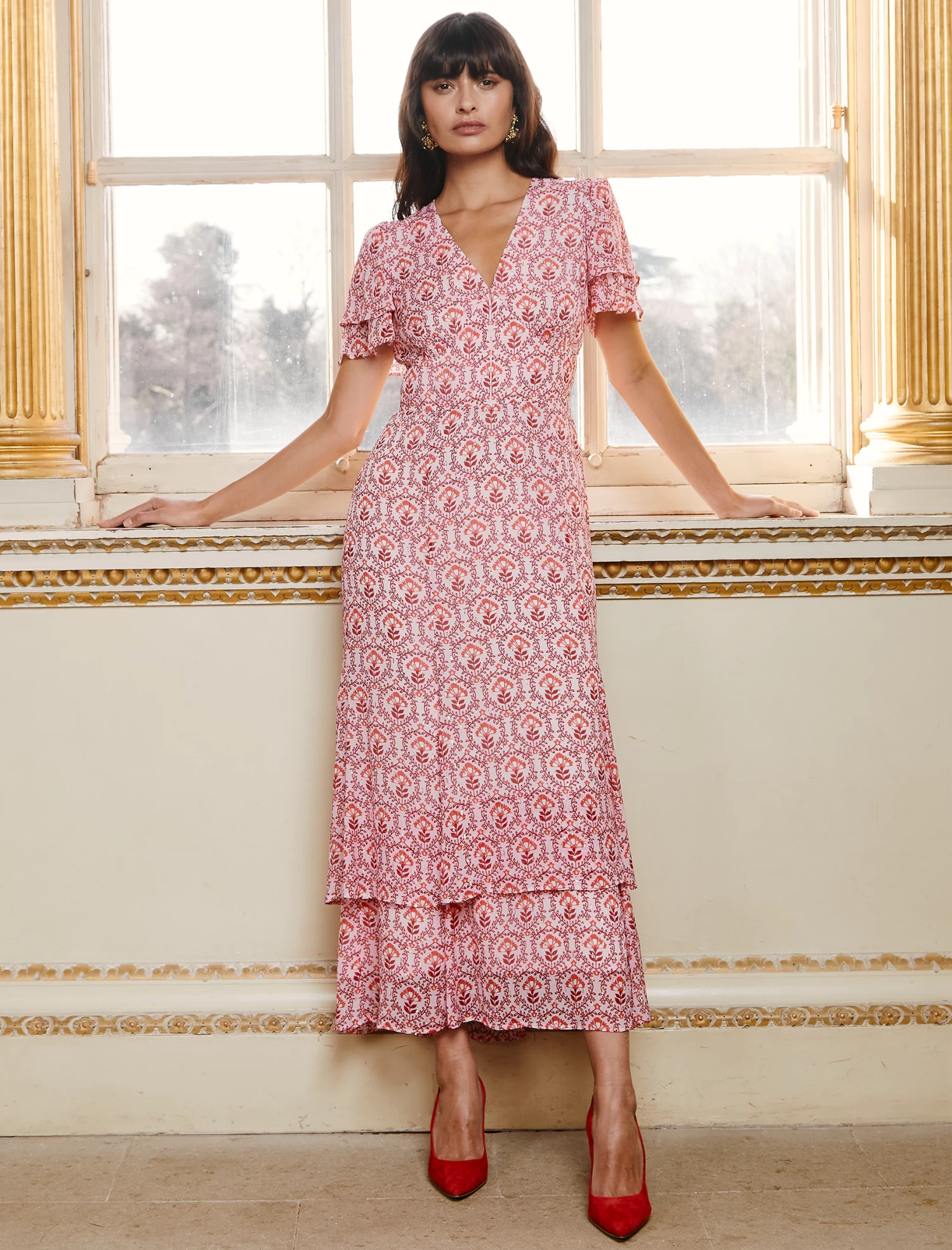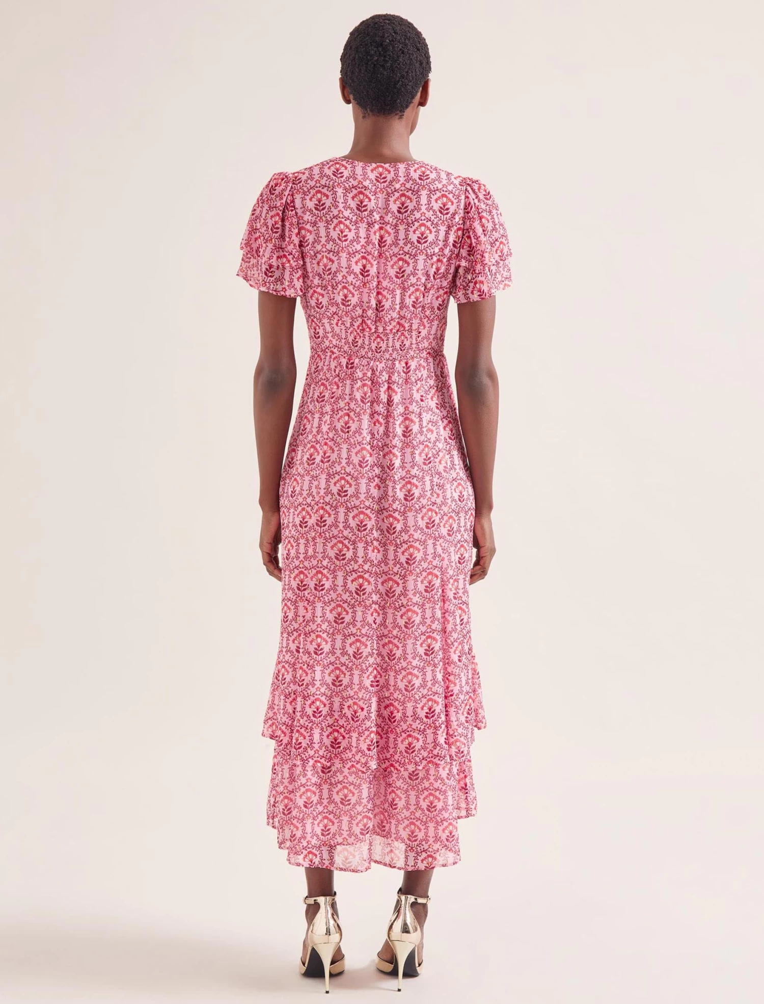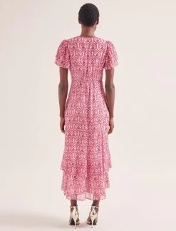 Your perfect plus-one for parties, weddings, and summer events, Lotta is cut from floaty georgette with glittering gold metallic fil coupĂ© detailing to give light-reflecting sparkle. The shirred elasticated back makes it as effortless to wear as it is to style – just add on-trend gold accessories and you’re good to go.