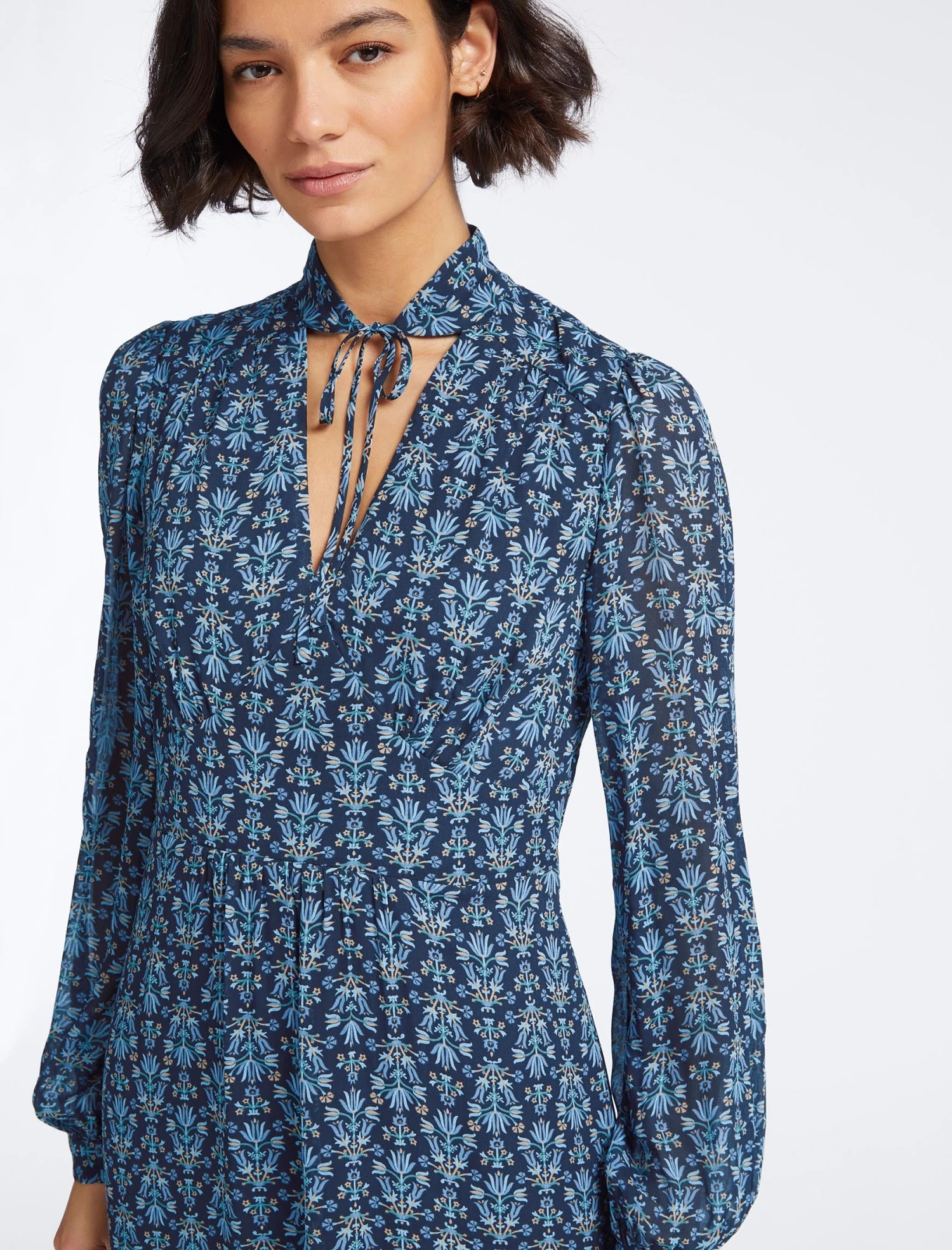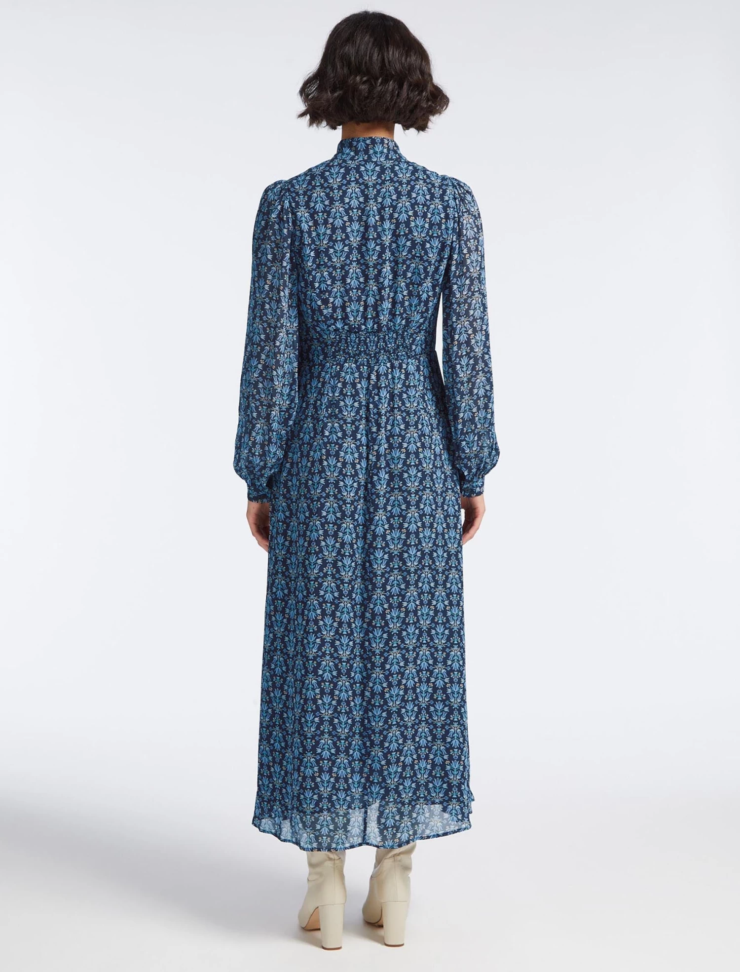 Based on our sell-out Jacquetta silhouette, Luella has trans-seasonal style down to a fine art. Designed in a delicate georgette blend with our folk floral print, the stand collar and empire-line silhouette that falls to a straight skirt elevate it to event-ready status. The long sleeves and maxi cut ensure it also has wintry days covered.