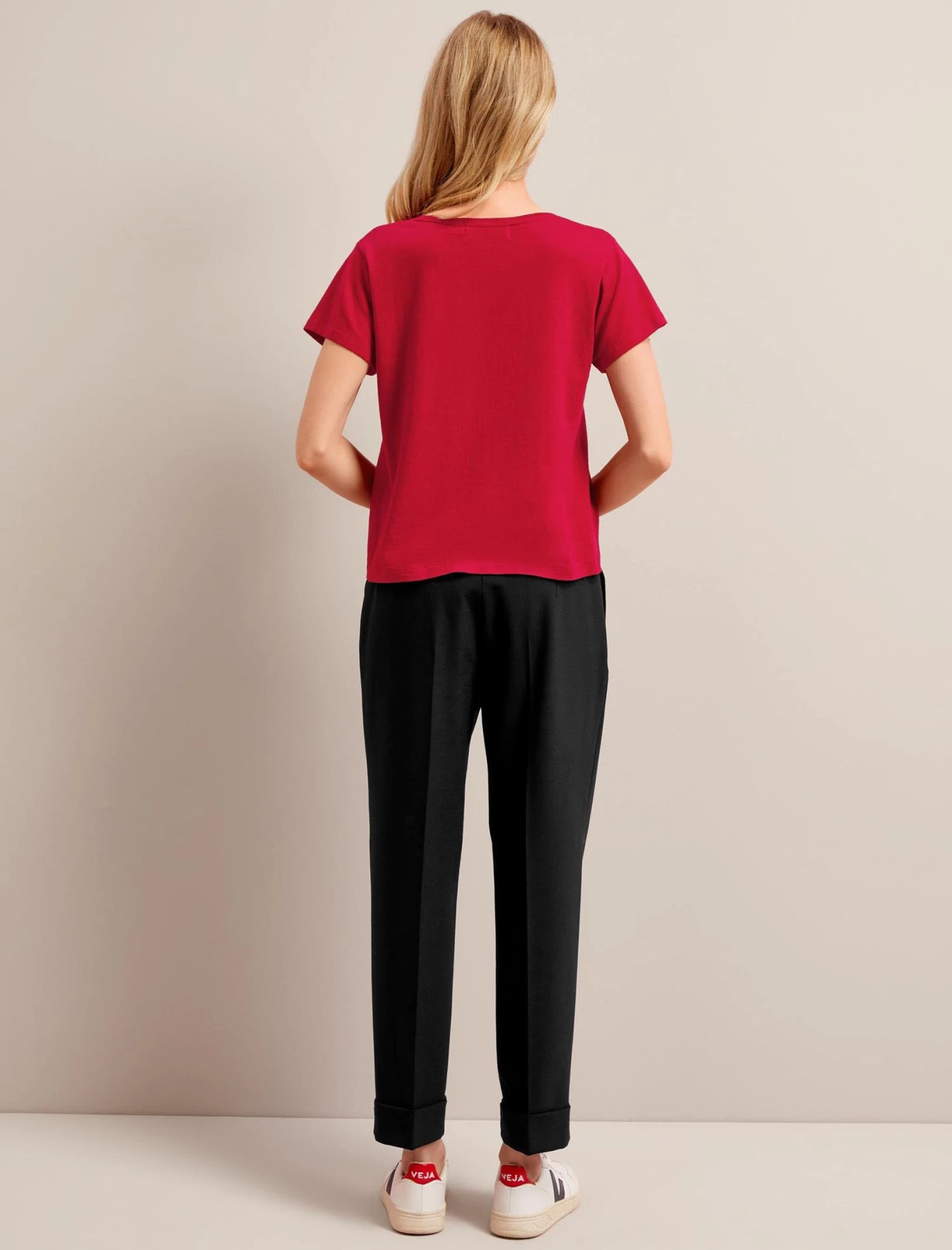 Anything but basic, our Madison T-shirt is knitted in a fine cotton linen blend that is cool and luxurious to wear. Knowing the power of a great tee as a summer wardrobe building block, we have obsessed over the fit to make sure it’s next-level– not too big or too small, the ideal length to be worn tucked or untucked, and the perfect V-neck for just the right amount of décolletage.