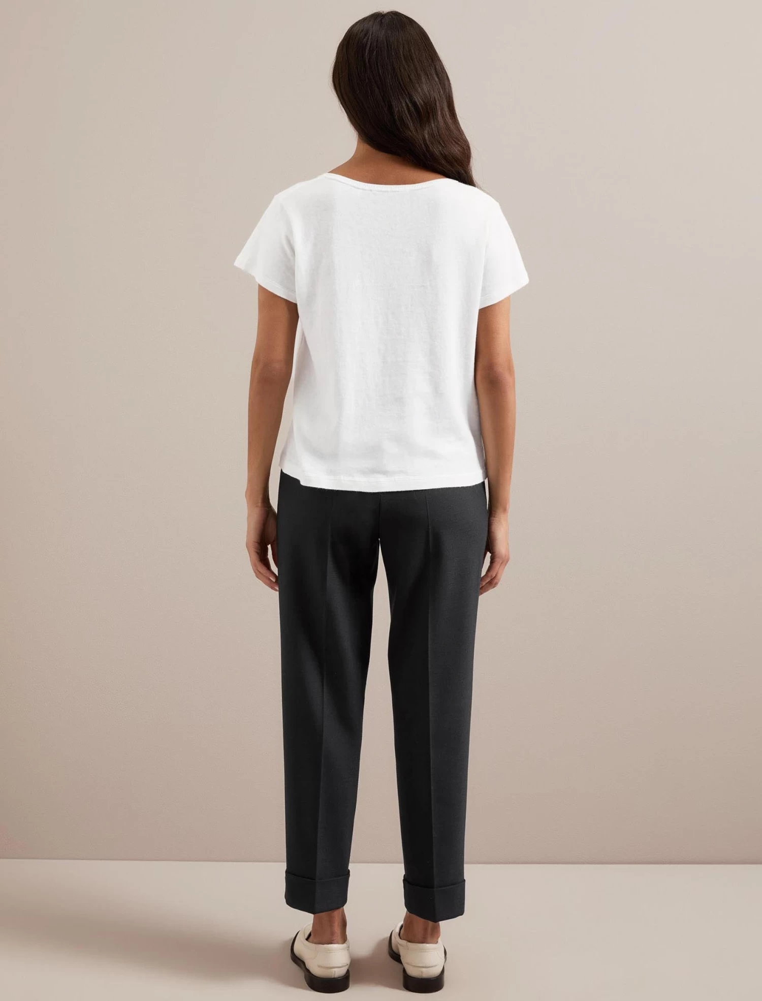 Anything but basic, our Madison T-shirt is knitted in a fine cotton linen blend that is cool and luxurious to wear. Knowing the power of a great tee as a summer wardrobe building block, we have obsessed over the fit to make sure it’s next-level– not too big or too small, the ideal length to be worn tucked or untucked, and the perfect V-neck for just the right amount of décolletage.