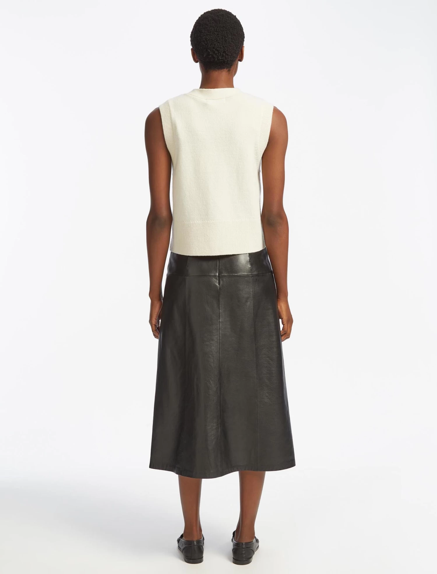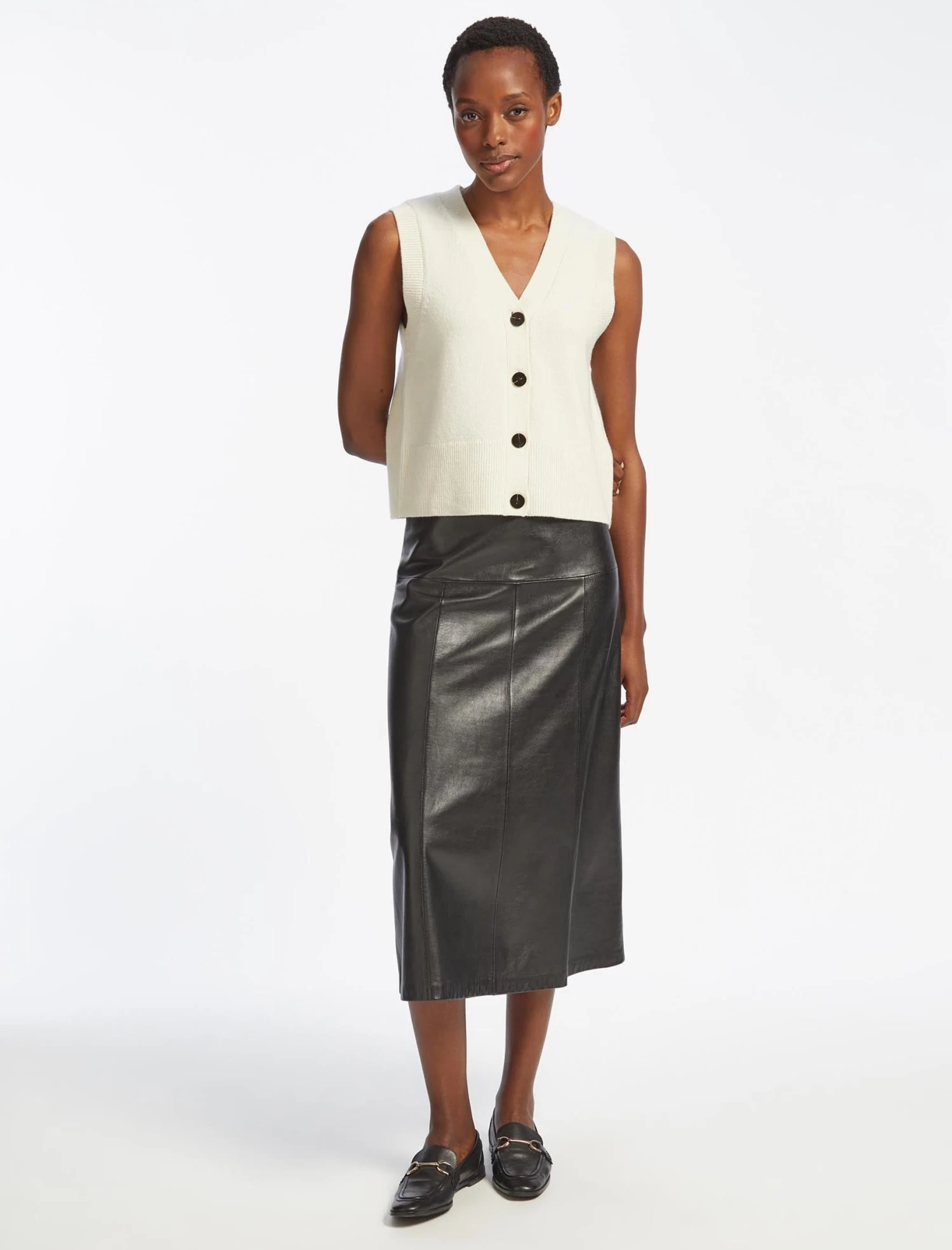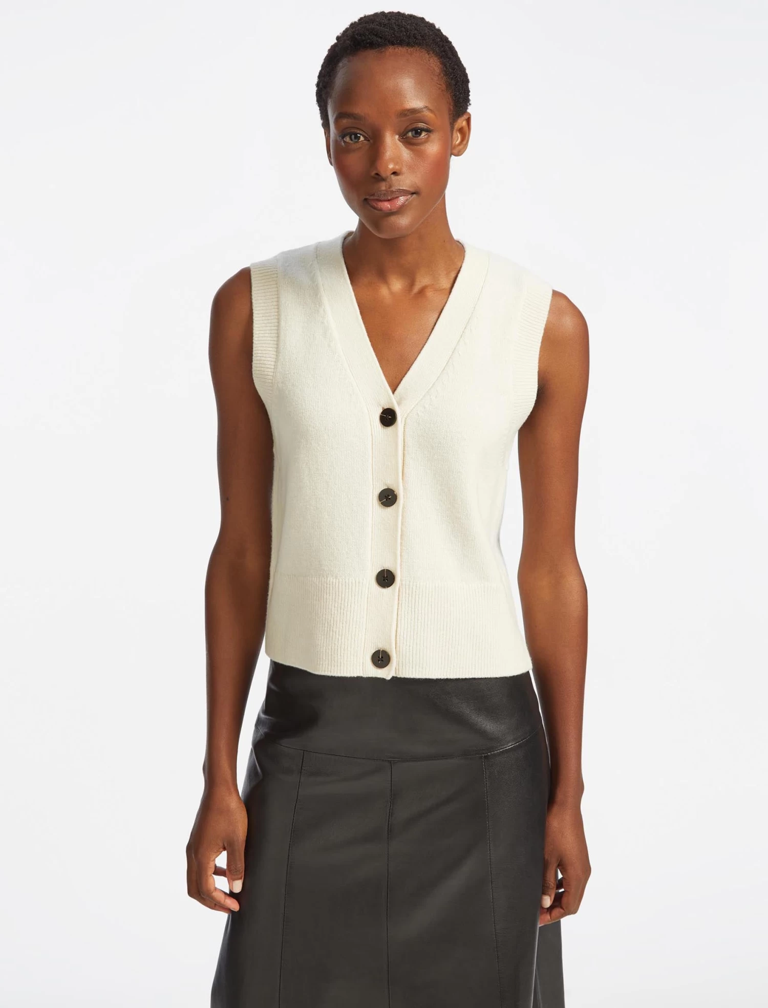 The perfect year-round layering staple, we’ve designed Meryl in a classic cream wool blend. Whether worn under a blazer or alone (summaryed or undone for a more androgynous look), the flattering knitted waistcoat silhouette and fitted armholes fit snugly over T-shirts or long-sleeved tops. Contrast the on-trend knit with our crisp Techni-Linen Hayden or Tate trouser or Lyla skirt.