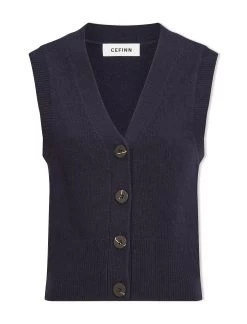 The perfect year-round layering staple, we’ve designed Meryl in a classic navy blue wool blend. Whether worn under a blazer or alone (summaryed or undone for a more androgynous look), the flattering knitted waistcoat silhouette and fitted armholes fit snugly over T-shirts or long-sleeved tops. Contrast the on-trend knit with our crisp Techni-Linen Hayden or Tate trouser or Lyla skirt.