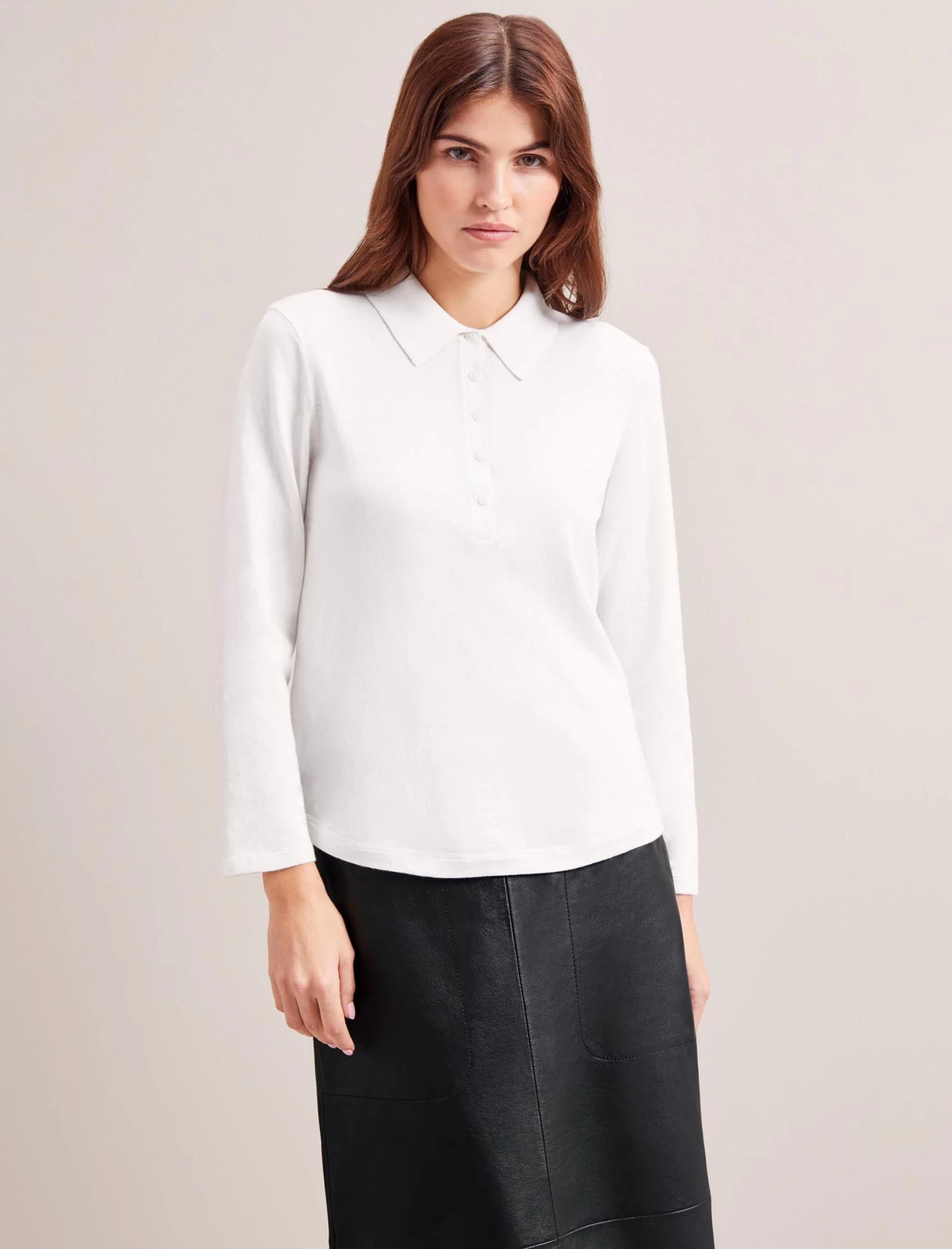 A smarter take on a classic T-shirt, Morgan is styled on a classic polo shirt with its short placket and collar. Cut from a fine silk-and-cotton blend, it’s also lightweight and endlessly wearable. With gentle shaping through the waist and a dipped hem for ease of styling, we think this could be your perfect spring-to-cool-summer top.