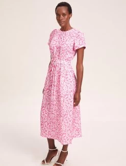A failsafe for smarter summer dressing, Nina has a gently fitted bodice that falls to a loose waist with a long, gathered skirt that makes it so easy to wear. Cut in a beautiful drapey cotton viscose voile, this season it comes in the prettiest micro blossom, our exclusive in-house designed print. Cinch in with the removeable belt, swap out for one of your own or wear lose for easy breezy elegance. A standout style, Nina is perfect for Ascot, Wimbledon, summer garden parties and weddings and celebrations!