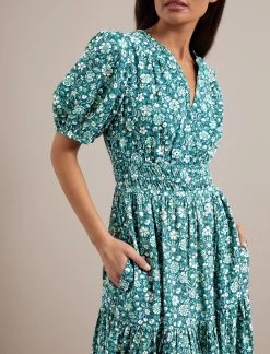 Cut in our beautifully light, soft and drapey cotton viscose voile in our latest feminine floral, Olive is a dream dress to wear. Inspired by our bestselling Evie dress, it features a nipped in ruched elasticated waist and discreet side pockets for relaxed wearability. Perfect for summery sporting events and late summer celebrations or worn casually with sandals.