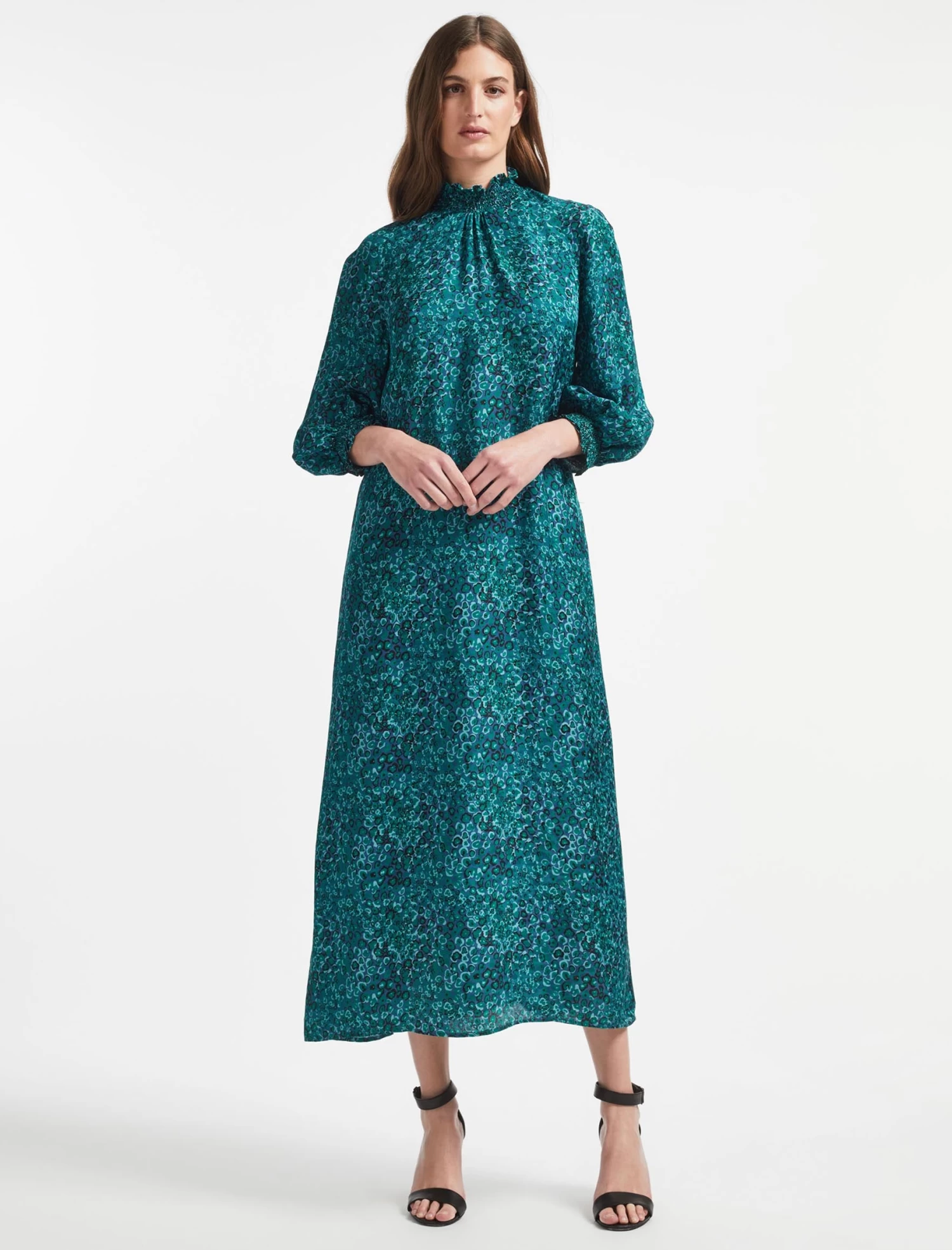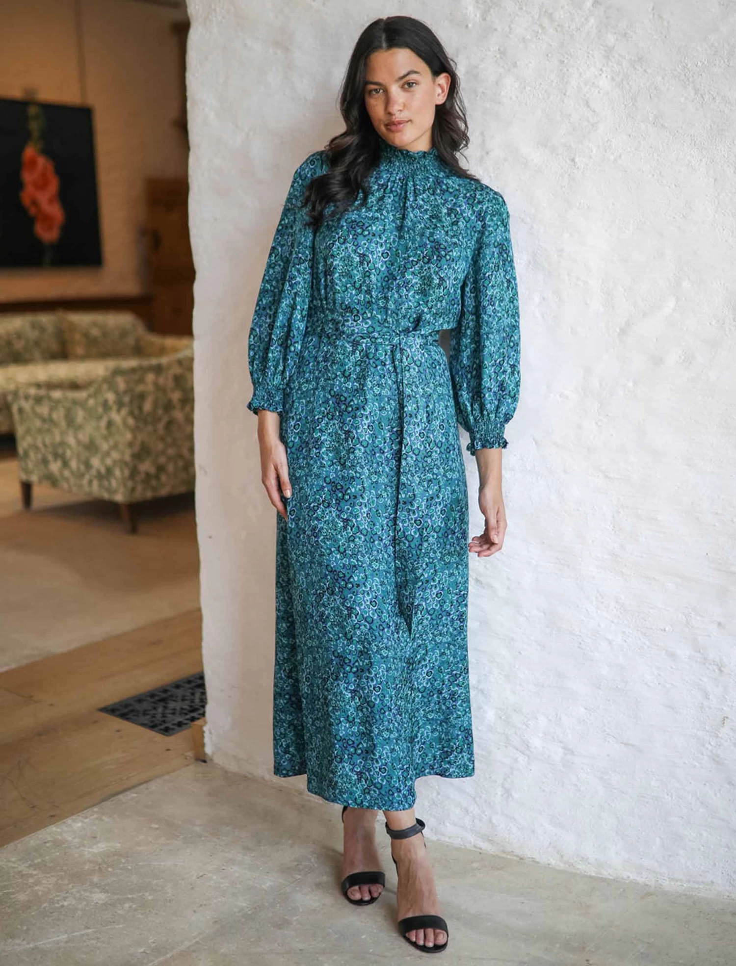 A rework of one of our bestselling silhouettes, Rosamund is a unique column shape. Sophisticated and wearable in equal measure, it is cut from our signature silk blend jacquard with a leopard pansy print and has easy raglan sleeves and a relaxed waistline, which can be cinched with a detachable sash. A deceptively versatile style – simply add a black pointy heel or boot.