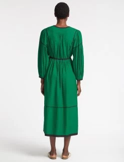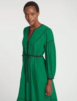 We’ve introduced a machine-washable linen blend to our Summer 23 collection for the first time, giving you more versatile hot-weather options. Take our Salone dress, which neatly balances form (contrasting binding, rouleaux summarys and twin-needle stitching) with function (long blouson sleeves, concealed side pockets and a drawstring waist). You’ll feel instantly relaxed but pulled together – the perfect combination for hot-weather dressing.