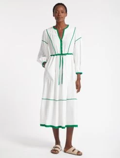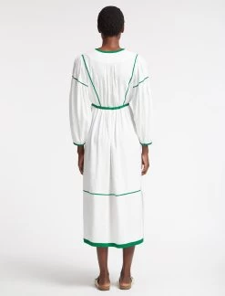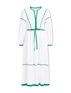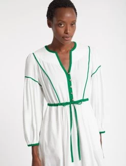 We’ve introduced a machine-washable linen blend to our Summer 23 collection for the first time, giving you more versatile hot-weather options. Take our Salone dress, which neatly balances form (contrasting binding, rouleaux summarys and twin-needle stitching) with function (long blouson sleeves, concealed side pockets and a drawstring waist). You’ll feel instantly relaxed but pulled together – the perfect combination for hot-weather dressing.