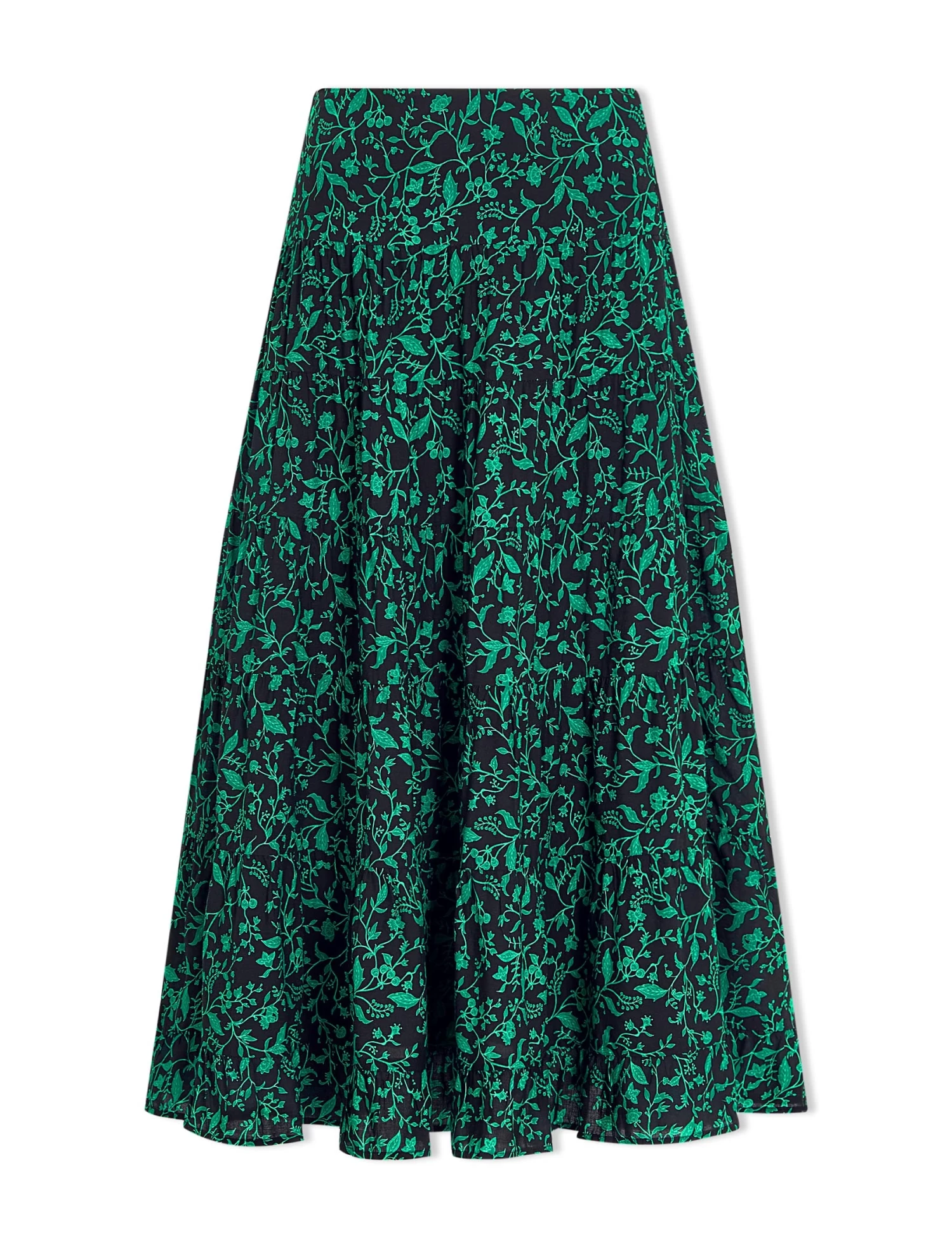 A swishy skirt instantly makes you feel pulled together, even on the dreariest of winter days. Designed in soft cotton voile, which gives it its shape and drape, our bramble-print Sawyer skirt is just the ticket. Slip on with a knit, and a trainer or long boot, for a day at the museum or a cosy pub lunch. Come the evening? Our classic Winona waistcoat and structured velvet blazer offset the fullness of the skirt.