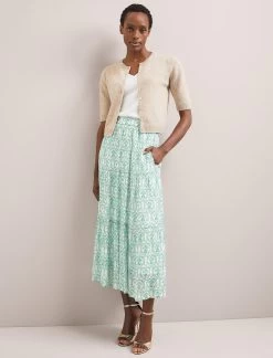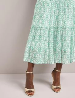 Cut from lightly crinkled georgette with gathered tiers and featuring a romantic floral print with glimmering gold metallic fil coupé, the Sedra skirt exudes femininity. Special enough for a dressed-up occasion, it can also be worn more casually with a t-shirt or sleeveless knit, earning it summer staple status.