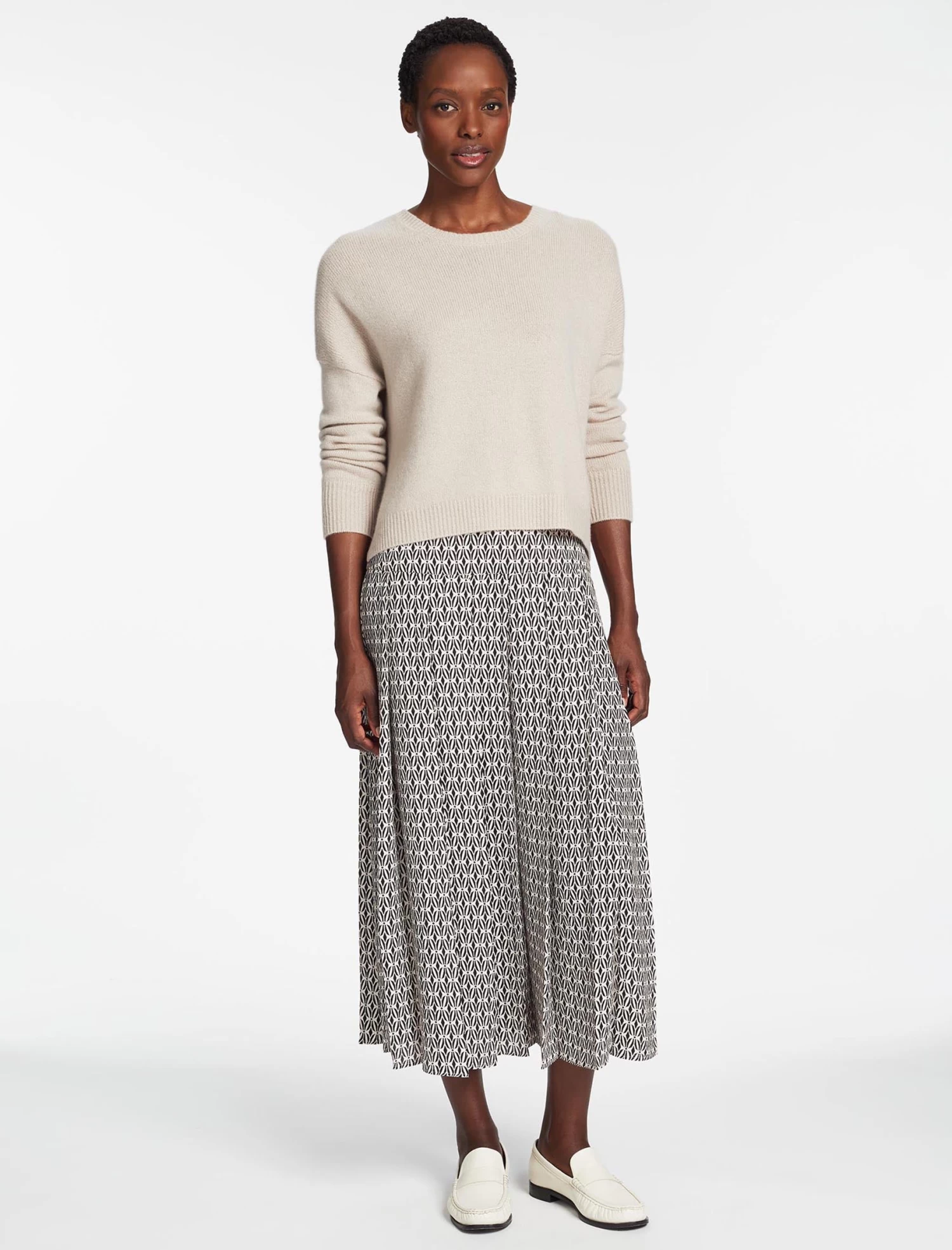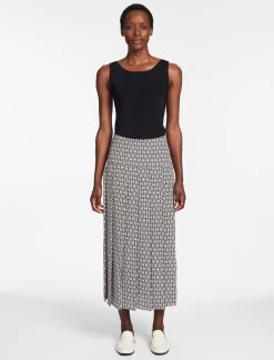 We’ve brought back our favourite Sienna skirt for Spring 2024 in a new recycled hammered crepe printed with our Trellis pattern. Not only is it machine-washable, but the permanent pleats mean there’s no need to iron it. Win-win. A versatile skirt for any time of the day, week or year, colour-match it with our new Johanna and Colette knits or Maia T-shirt.