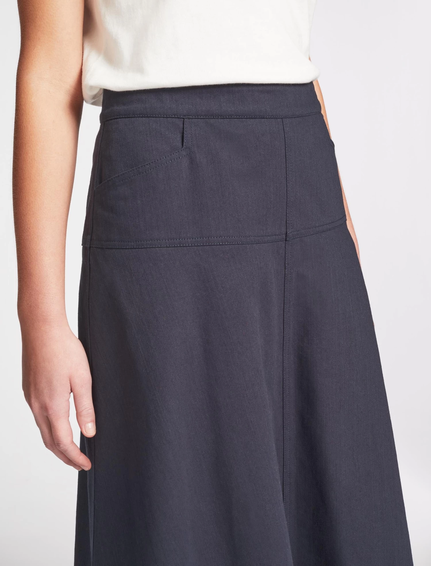 Adding poise and polish to downtime wardrobes, our Sierra A-line maxi skirt is cut from a heavy cotton twill with angled pockets and over-stitching that elevate it from basic to smart. Paired with our Madison T-shirt or Kyla cami and a box-fresh trainer or ballet pump, you’ll feel cool and collected even on the busiest of days.