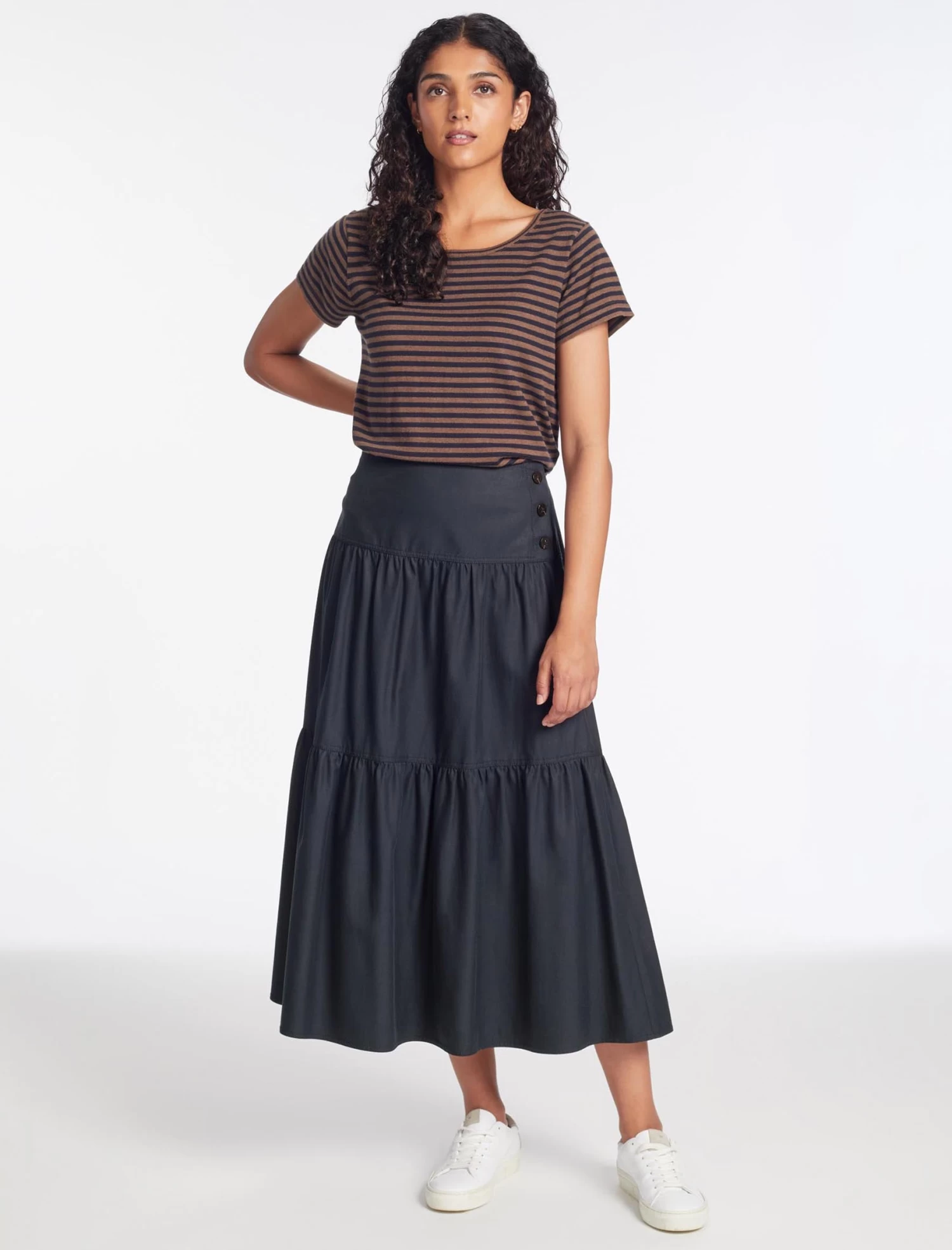 Our tiered Sylvia skirt in a crisp cotton twill is a downtime-dressing staple. Ideal for those weekend days when you want something a little more feminine but with zero flounce, it has side summary detailing and falls to a maxi length. Wear with a sandal and a tee, swapping to a long-sleeved T-shirt and trainer as the leaves begin to fall.