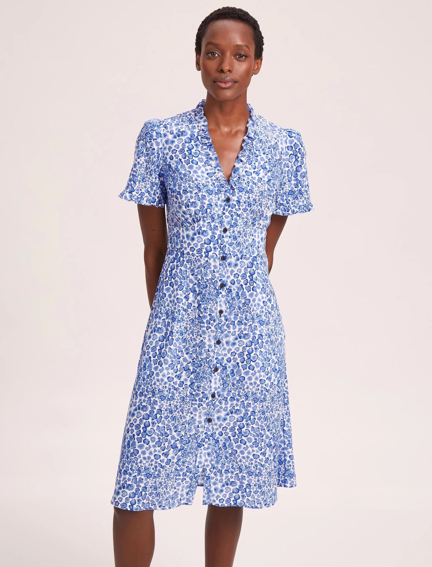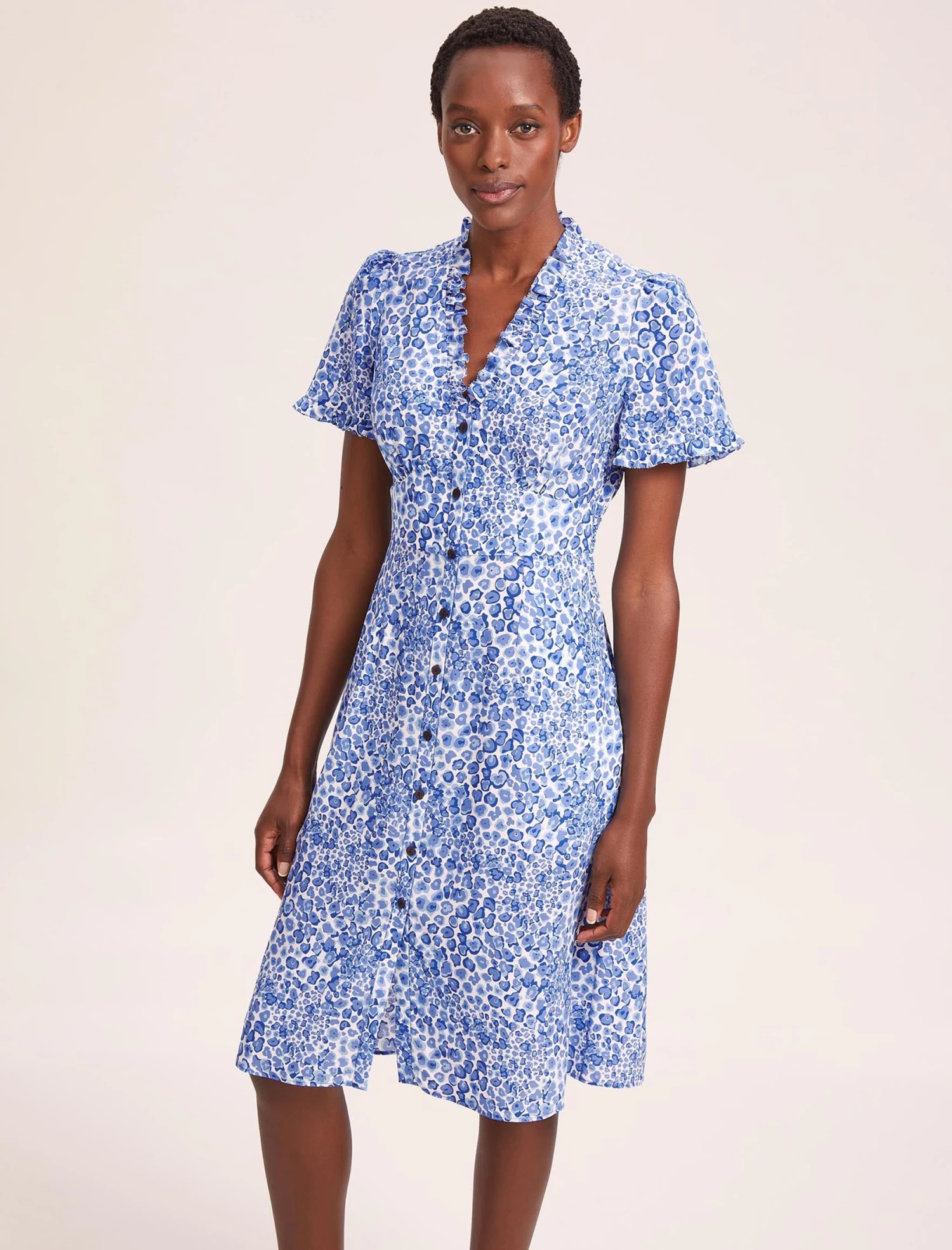 If shorter lengths are more your style, Tabby is your cut-above-the-rest summer tea dress. Designed in 100% silk crepe de chine, it has an easy nipped-in waist and shirring through the back for relaxed wearability. The summarys are stitched down through the bust and waist to stop gaping but can be opened at the bottom for a flirty look.