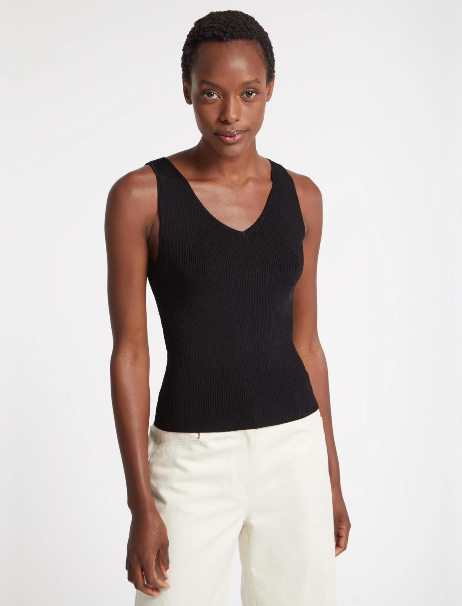 Who doesn’t love the ease of a co-ord? The simplicity lies in the styling. Our Tammy V-neck vest is cut to a flattering, fitted silhouette in a rayon-blend knit with added stretch. Wear with our matching Tammy skirt for a standout summer look that feels effortless and cool. Just add a platform leather flip-flop or mule and some oversize sunnies for the ultimate in summer chic.
