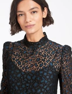 A brand new silhouette for Winter 22, our chic new Thalia blouse is cut from stretch lace and can be worn with a black camisole or strapless black bra underneath. Simply add our black trouser, denim or our Tiana leather skirt. It can be demure or sexy – you decide.