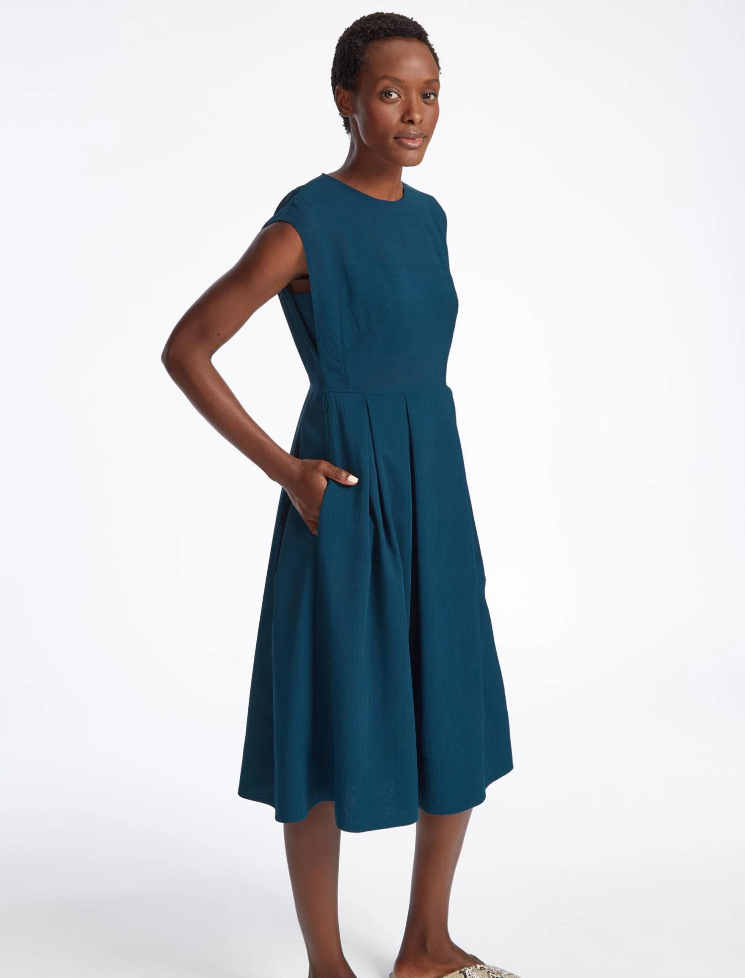Our bestselling Thandie dress elegantly contrasts a 1950s-style silhouette with carefully considered contemporary detailing, including French darts, a detachable ring-stud belt and discreet bodice panels. Made in our hero Techni Voile fabric, which is washable, crease-resistant and holds its shape 24/7, Thandie will be your go-to summer dress to take you from client lunch to the races in winning style.