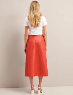 The Tiana skirt has earned iconic status in the Cefinn collection and with good reason. Bordering somewhere between pencil and A-line, its a sexy and seriously flattering shape and the butter-soft leather looks great when contrasted with pretty much anything from luxe silk and cashmere to crisp cotton, giving it year-round versatility. This season’s bold Orange works brilliantly with a simple white tee and coordinates with several of our summer knits.