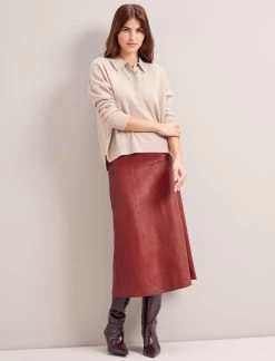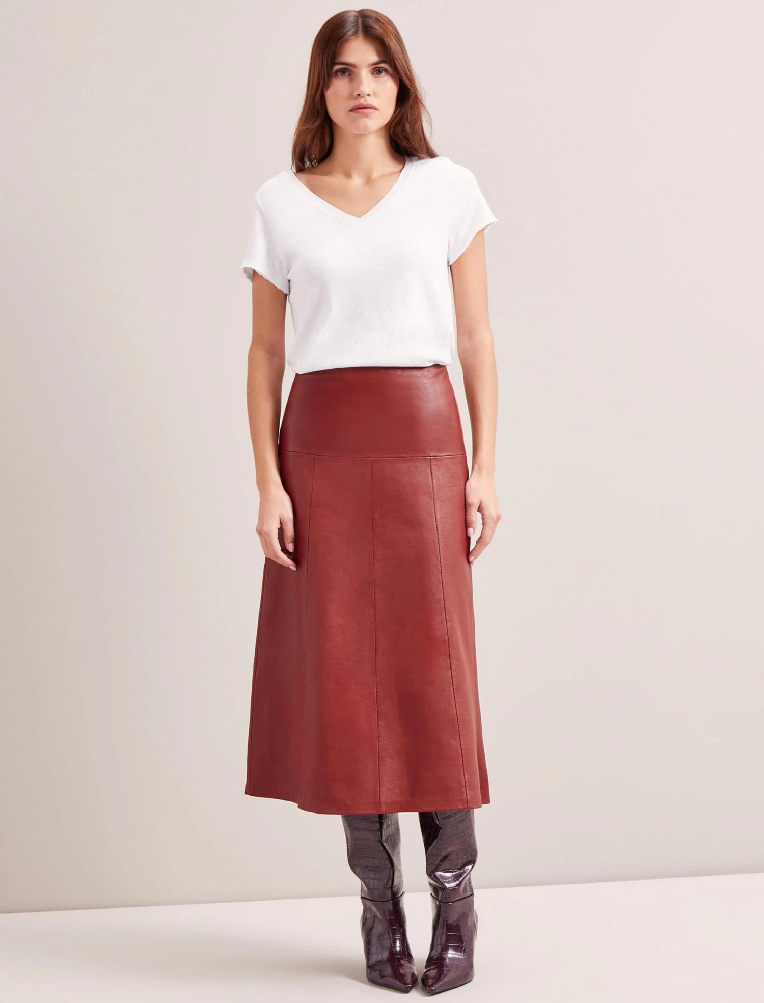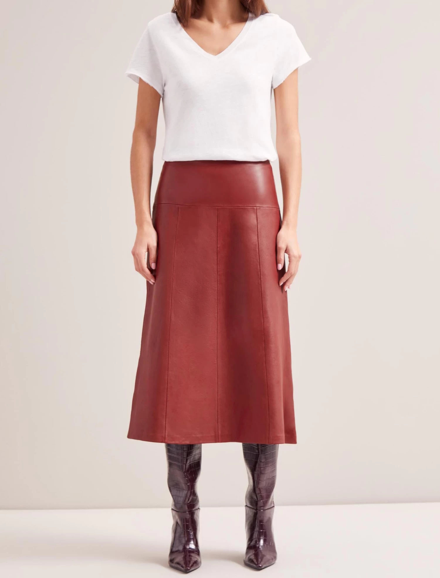 Classic, sleek and perennially stylish, our panelled butter-soft Tiana leather skirt will be one of the most versatile pieces in your wardrobe this season. Paired with a crisp white blouse or our Stella shirt and a sharp boot or point, it makes 9-5 dressing a breeze. Play to its rebellious side on downtime days with a box-fresh trainer, a vintage rock tee and undone hair.