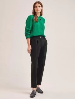 Tristan is an ankle-length, high-waisted trouser with elegant front pleats, side pockets and a double summary closure. Mix-and-match with a tailored jacket such as Jamie or your favourite knit or T-shirt, depending on the time of year.