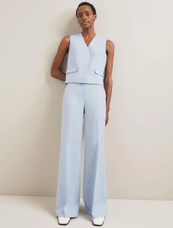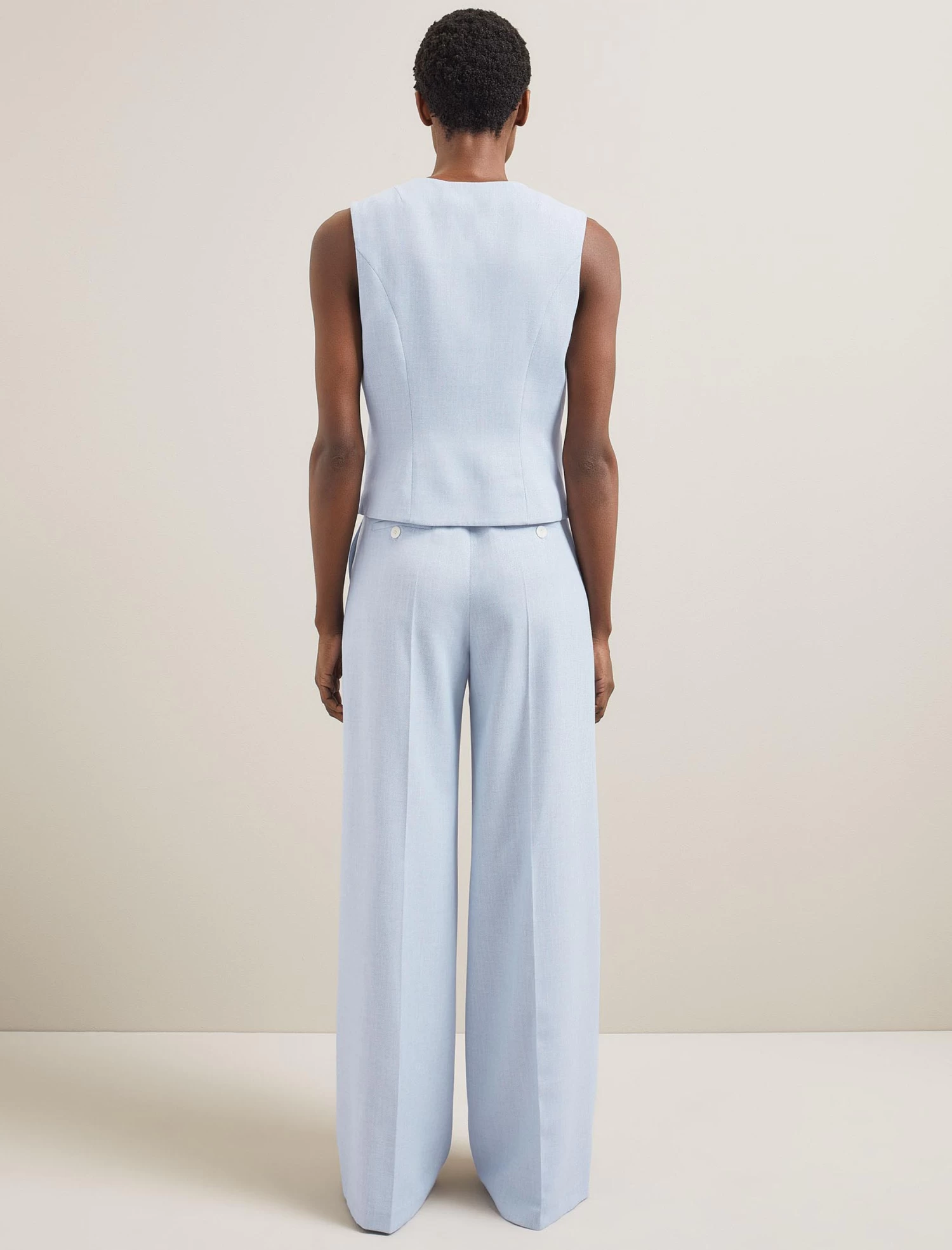 Cool, elegant and leg-lengthening, our super wide-leg Tyler trouser delivers a so-now silhouette. Tailored in a naturally slubby linen blend that is crease resistant and holds its shape, it has an elasticated back waist for easy wearability. Pair with the Jamie blazer for smarter office days and summer events, or wear with a white tee and trainer for effortless cool.