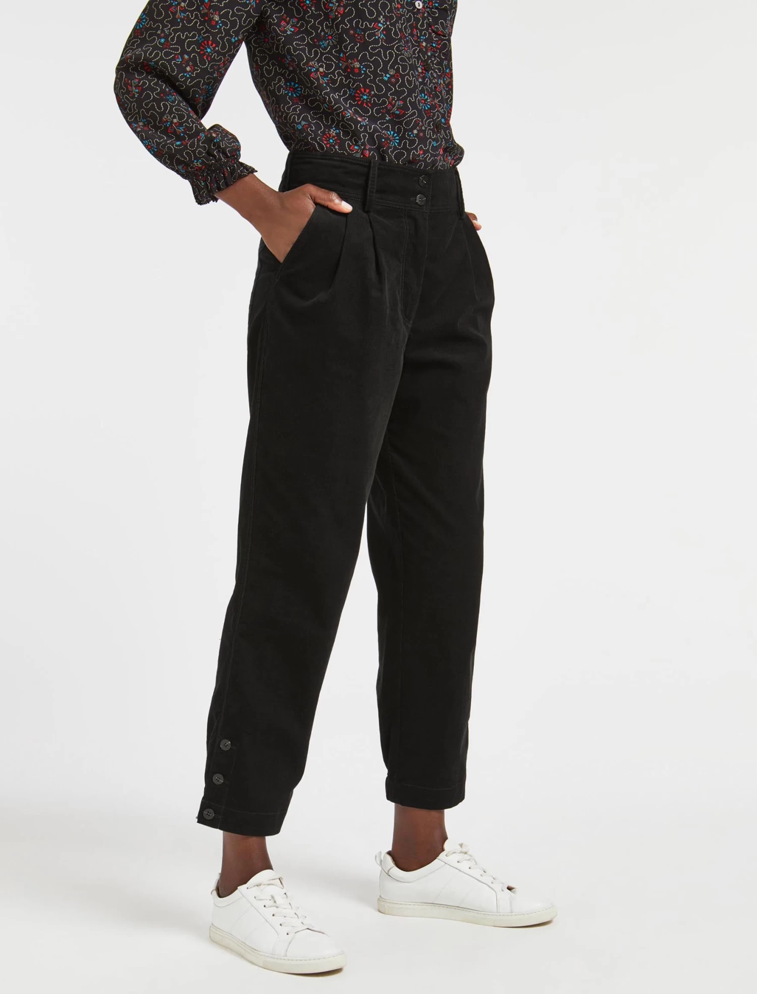 A smart addition to your winter wardrobe, our pleated, high-waisted Tyson trouser has been designed in our cotton pin corduroy, which has a look of a luxe velvet, the feel of a soft cotton and the practicality of a machine-washable fabric. The shirred elasticated back waistband and pockets make it ideal for everyday wear, while the summary detailing and gathering at the ankle elevate it for smarter occasions. Add a heel or loafer and a blouse, and you’re good to go.