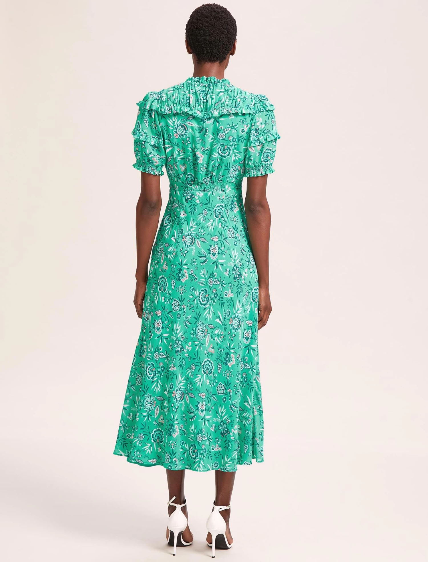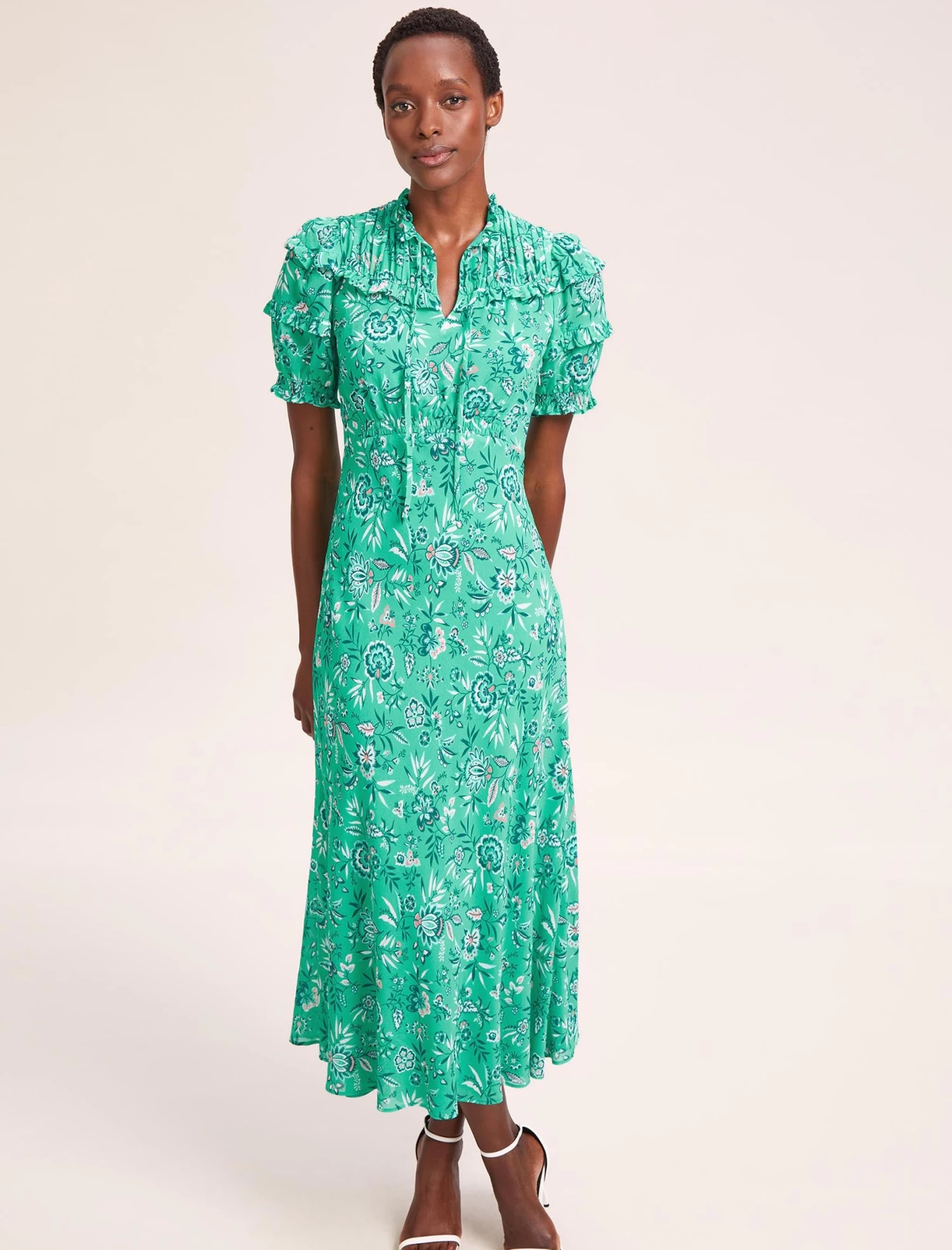 A reimagining of our sell-out Voletta dress, the Viola takes inspiration from timeless vintage style. With pretty ruching, softly shirred sleeve, a flattering empire line with bias-cut skirt and an adjustable neckline that can be worn open or closed, this dress delivers for Ascot, weddings, summer celebrations and more.