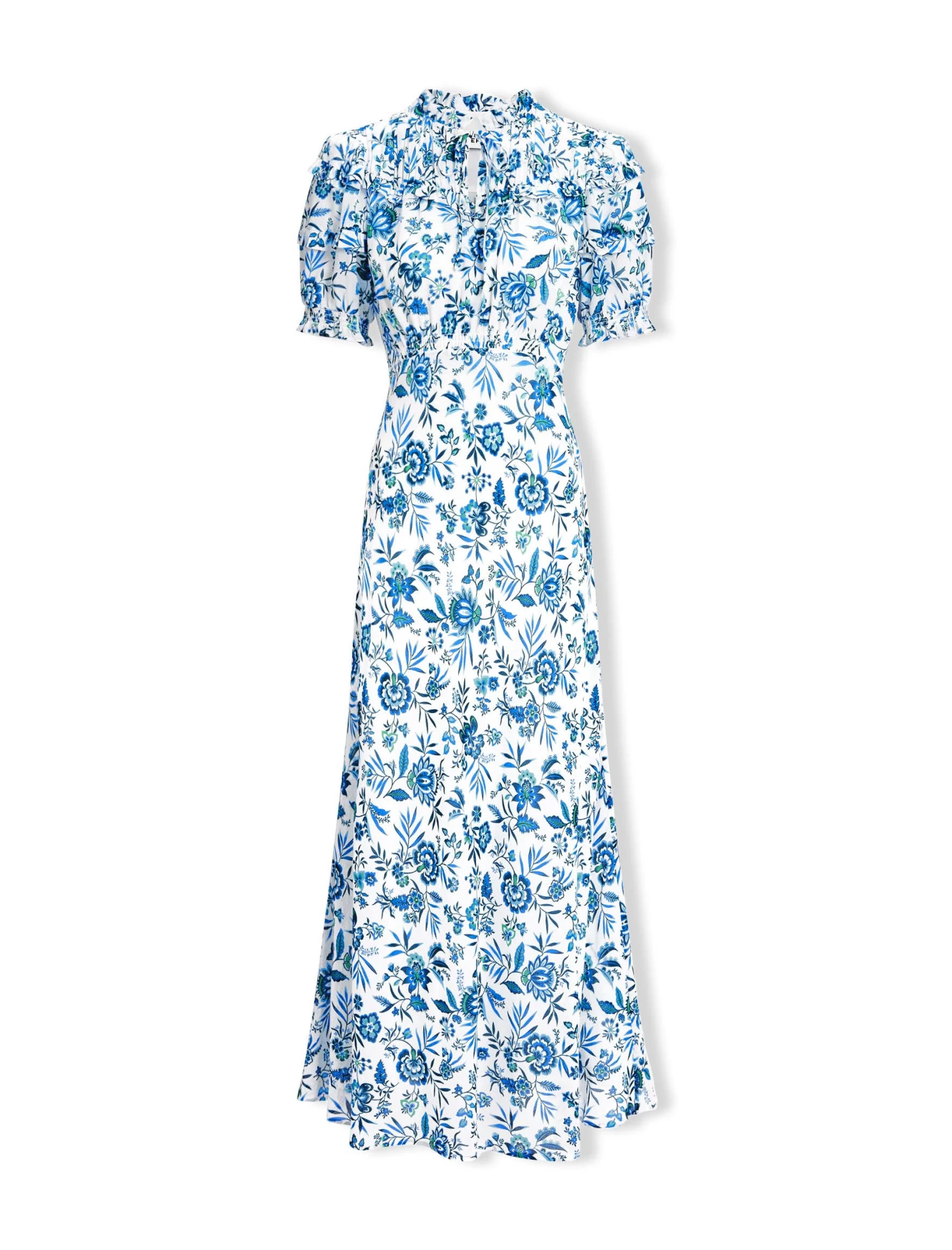 A reimagining of our sell-out Voletta dress, the Viola takes inspiration from timeless vintage style. With pretty ruching, softly shirred sleeve, a flattering empire line with bias-cut skirt and an adjustable neckline that can be worn open or closed, this dress delivers for weddings, summer celebrations, Ascot and more.