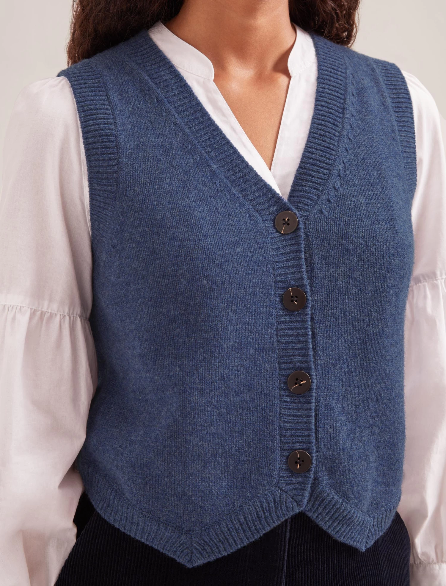 Our cashmere-and-wool blend Wesley waistcoat is an on-trend layering piece with year-round versatility. Wear alone with a wide-legged trouser or baggy jean for a laid-back, edgier vibe. Alternatively, layer it over a shirt or dress, or under a blazer when the office air con is too chilly.