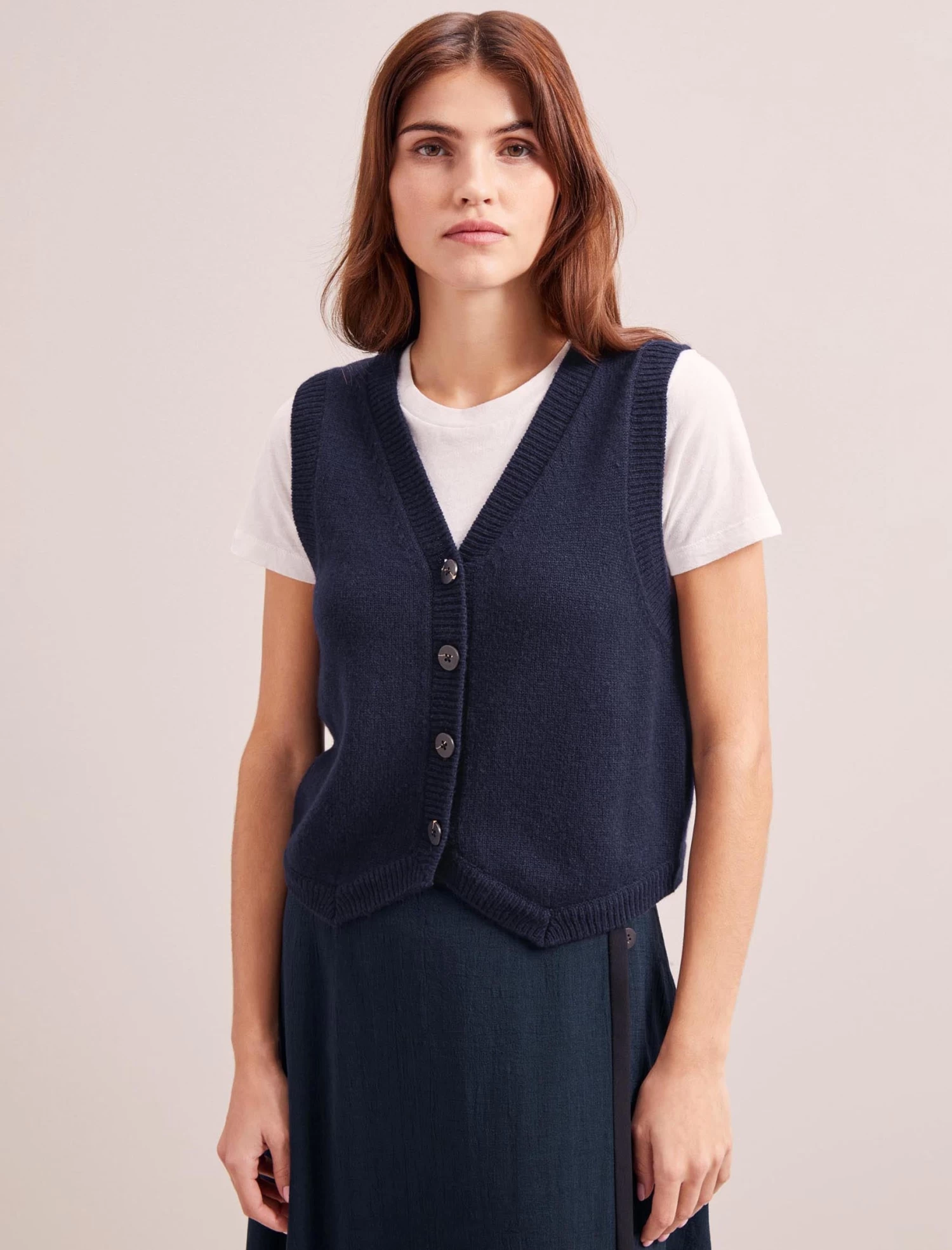 Our cashmere-and-wool blend Wesley waistcoat is an on-trend layering piece with year-round versatility. Wear alone with a wide-legged trouser or baggy jean for a laid-back, edgier vibe. Alternatively, layer it over a shirt or dress, or under a blazer when the office air con is too chilly.