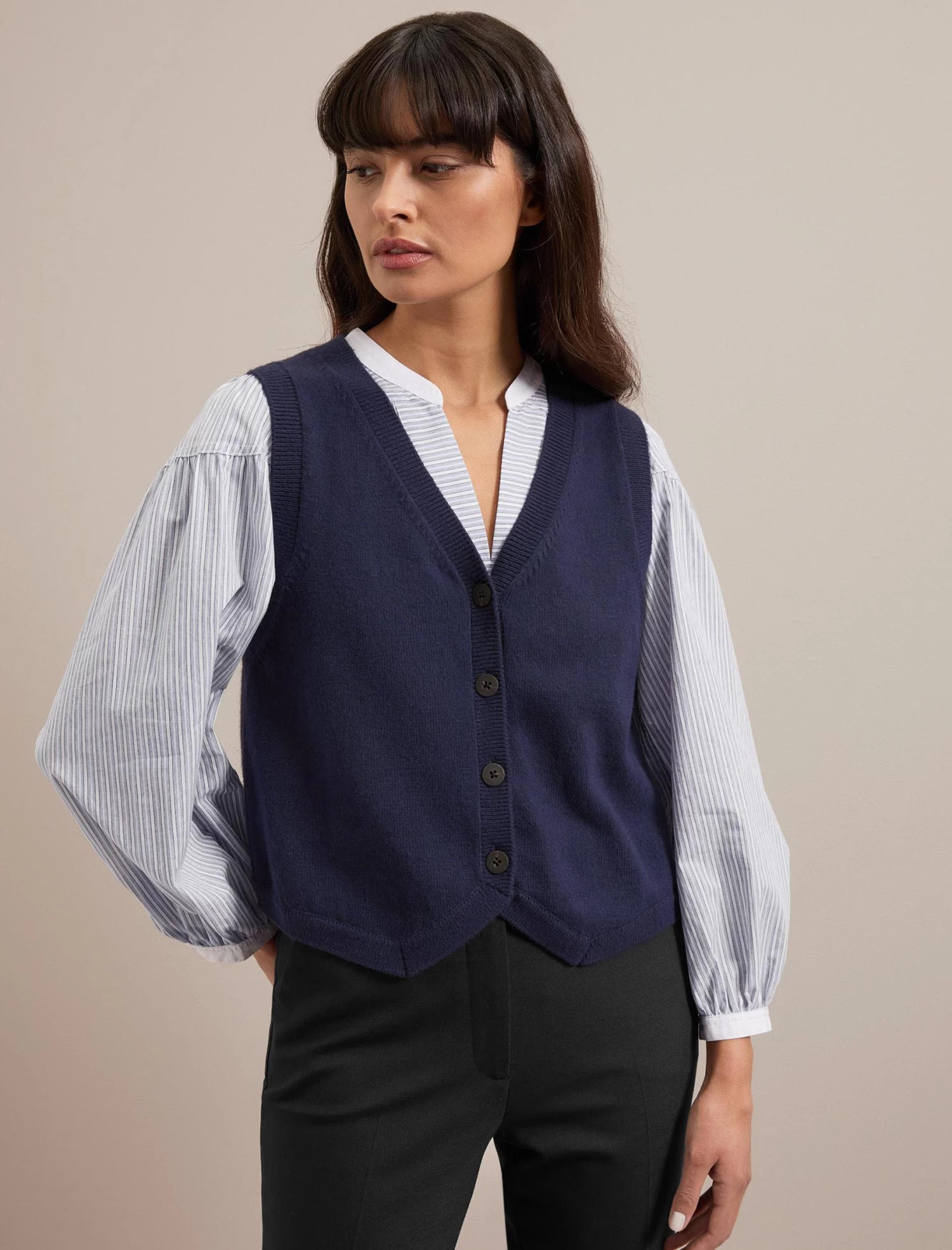 Back by popular demand, the Wesley knitted waistcoat is here for summer in a cool cotton blend. Wear on its own with a wide-legged trouser or a leather skirt for a sexier look or layer over a t-shirt or under a jacket on cooler days. There is virtually nothing it doesn’t look great with – the styling opportunities are endless.