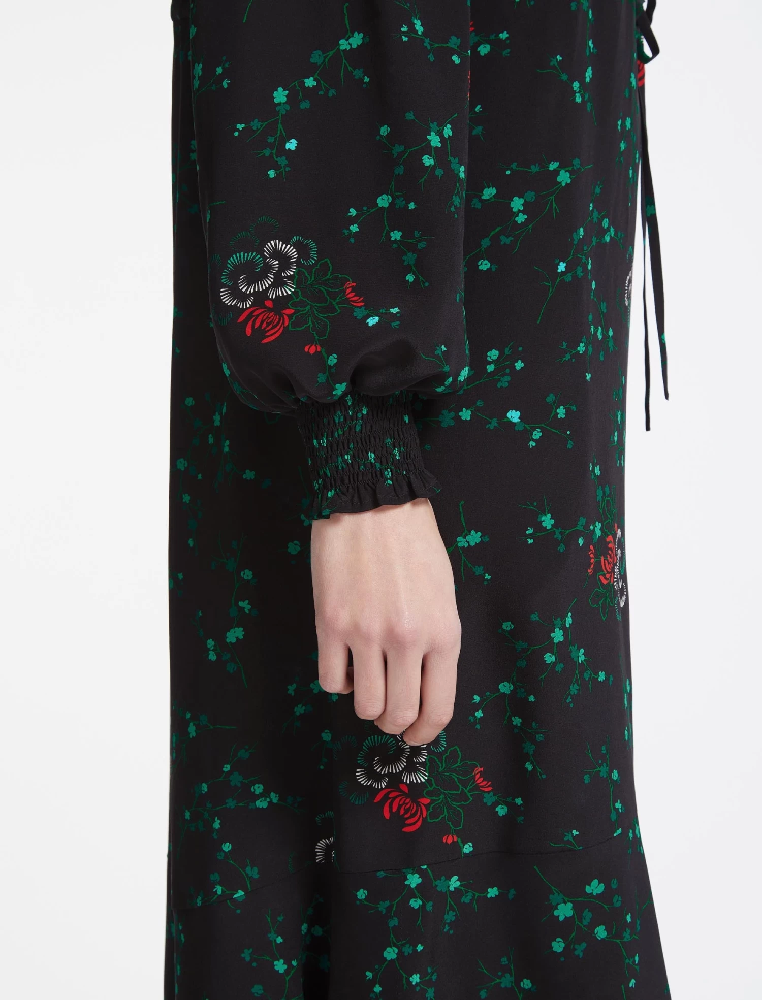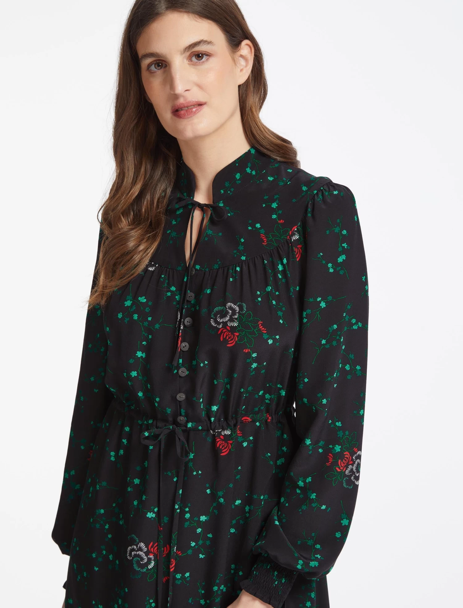 The ultimate occasion-ready dress, our silk crepe-de-chine Zahra will effortlessly navigate all manner of events with the charm and ease of a party pro. The stand-collar with slim neck ties and the drawstring waist can be tied or worn loose ensuring it is both versatile and effortless to wear, while the print will help you stand out in a sea of LBDs.